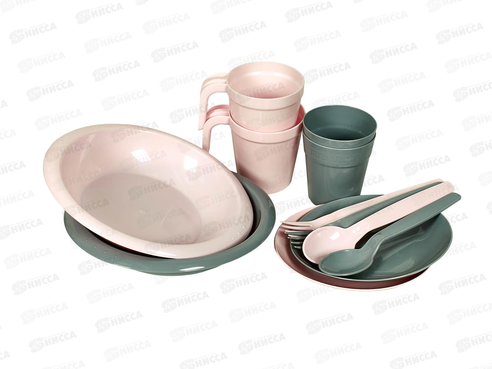 Набор дачный 2 персоны серый/розовый сетка *9 ИНТ