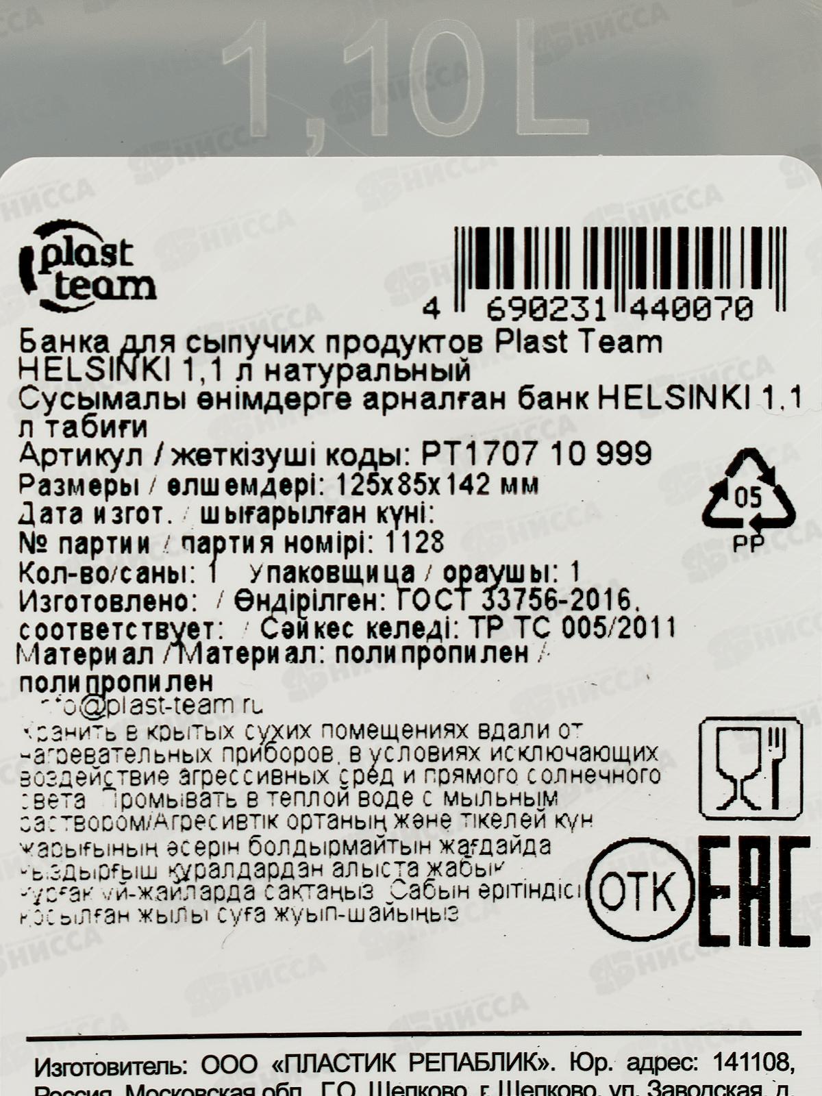 Банка д/сып прод "HELSINKI" 1,1л РТ170710999