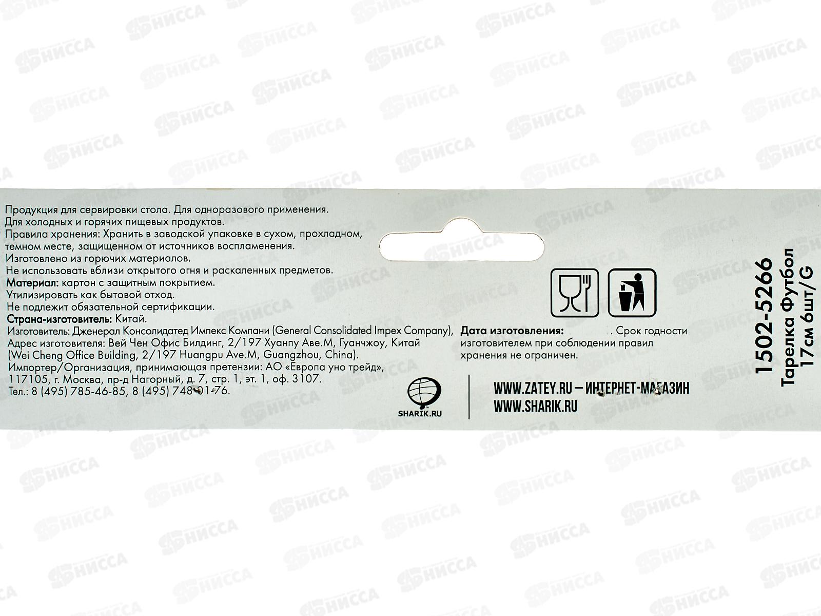 Тарелка бумажная Футбол 17см 6шт/G, 1502-5266