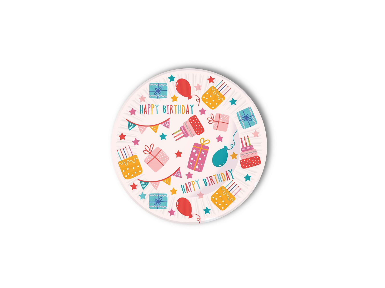 Тарелки бумажные С днём рождения (18см, 6шт) флоупак, ТМ-2122