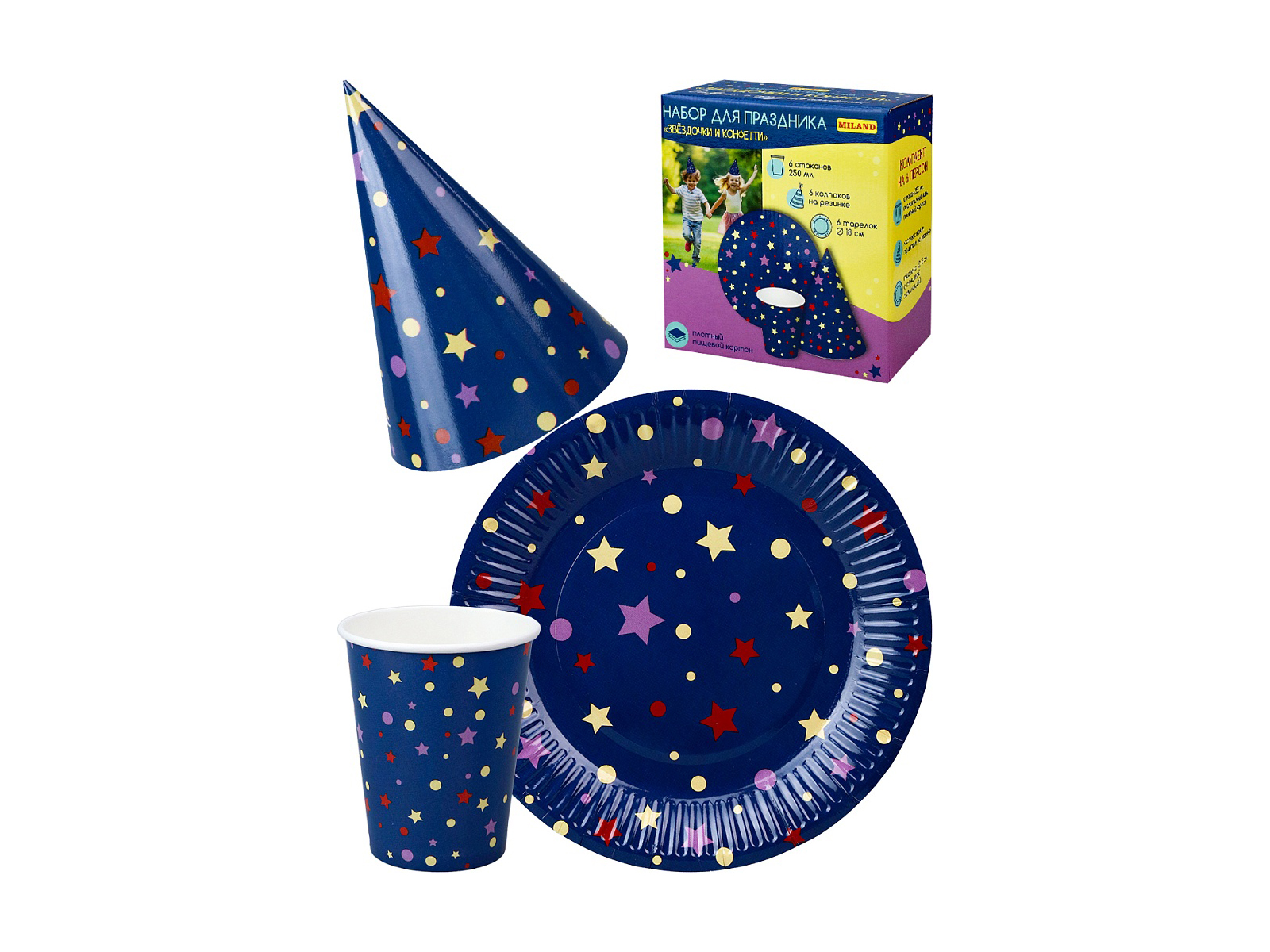 • Набор для праздника Звездочки и конфетти (тарелка 6, стаканы 6,колпаки 6) НП-2137