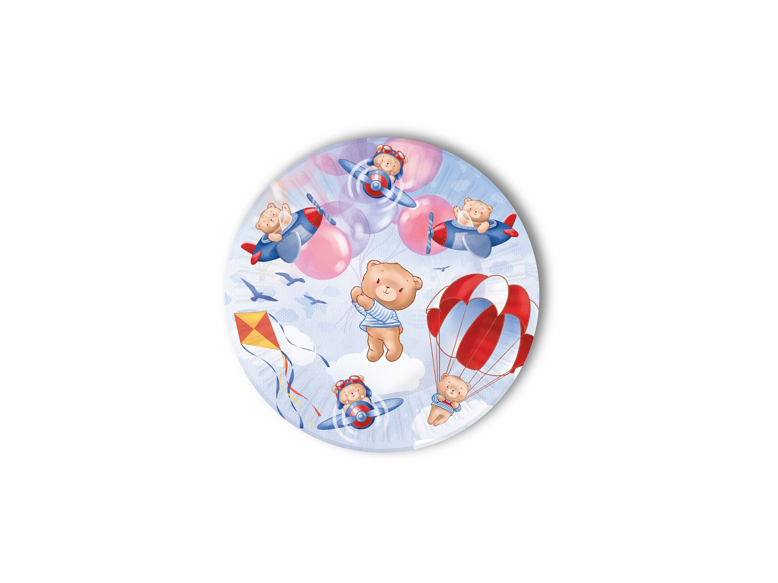 Тарелки бумажные Мишки в полете (18см, 6шт) флоупак, ТМ-2125