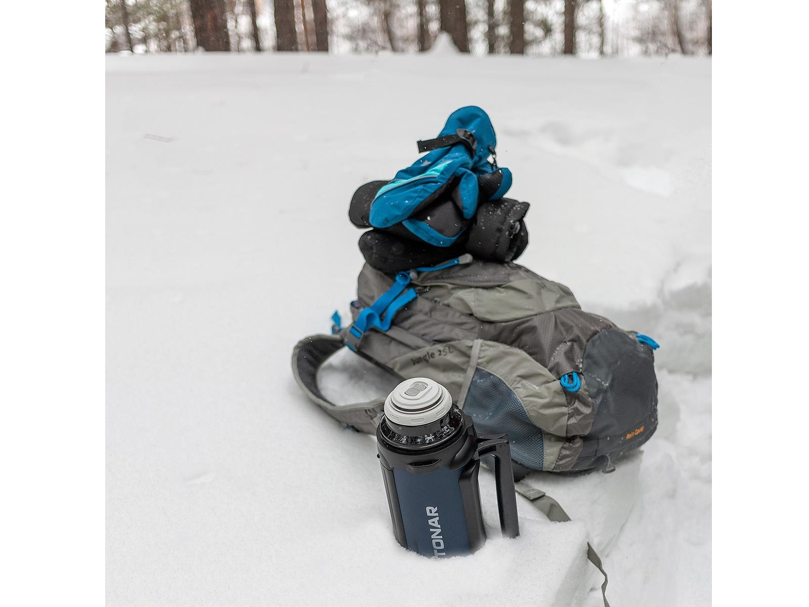Универсальный термос с удобной складной двойной ручкой. Термос укомплектован вместительной крышкой-чашкой с ручкой, дополнительной пластиковой чашкой, ремнем для переноски.