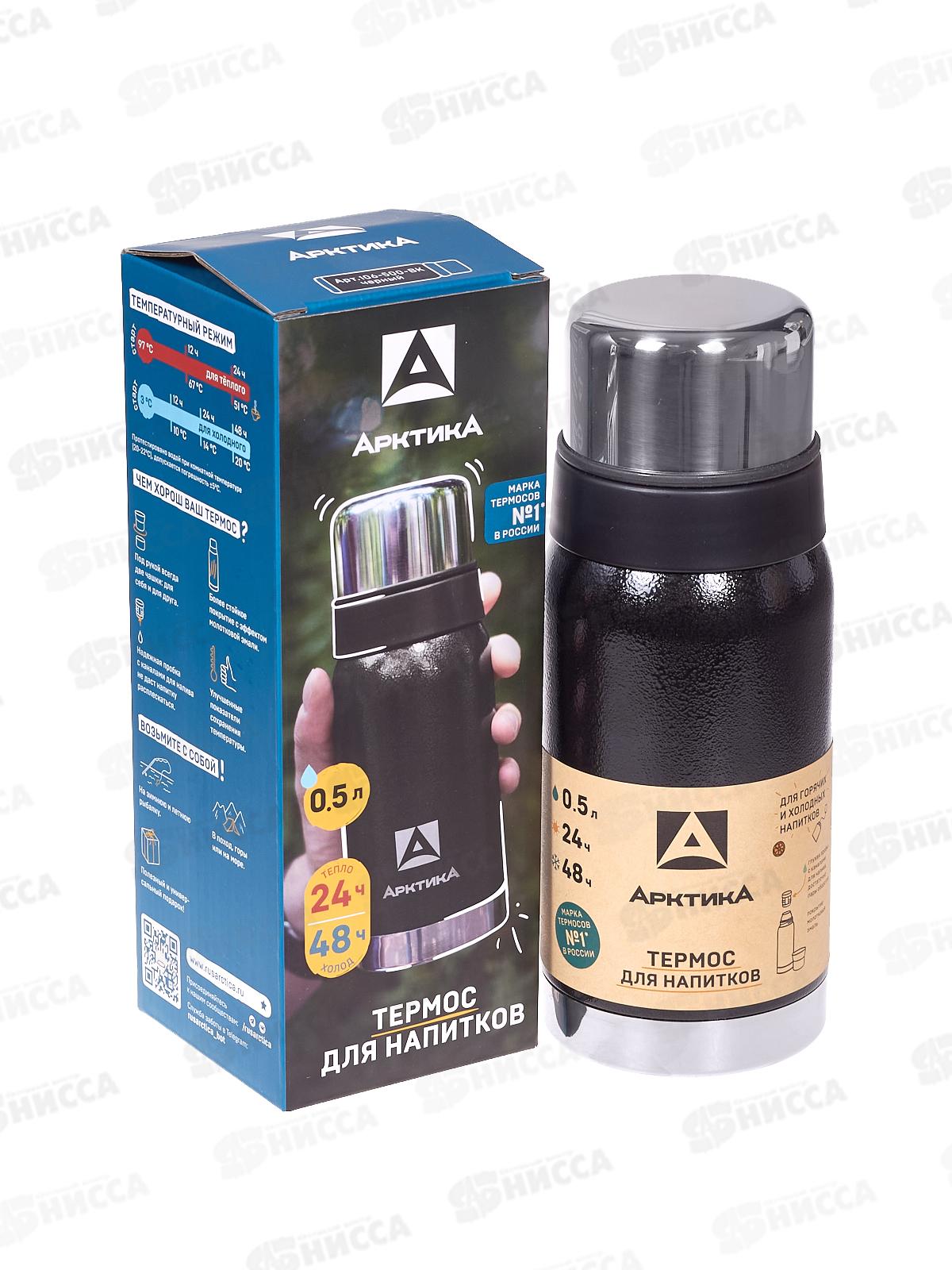 Термос 500мл для напитков, вакуумный, 106-500 черный тм "Арктика" *6