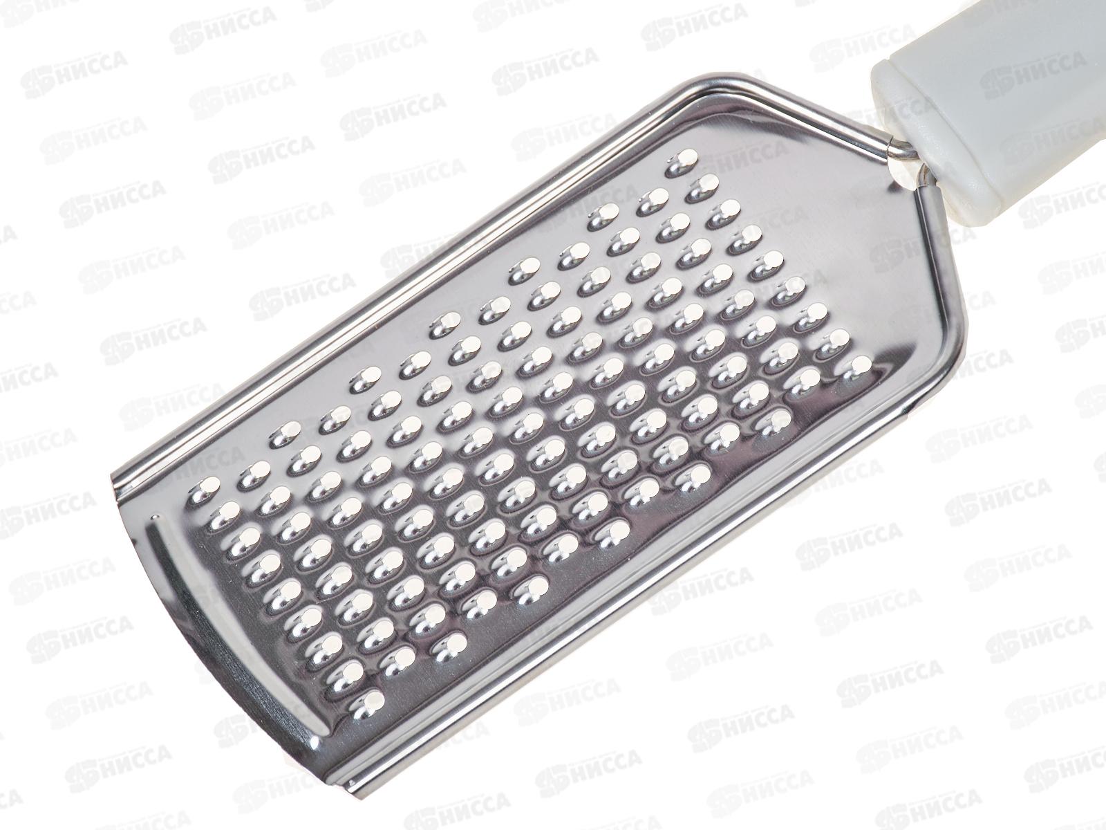 Терка Aura изготовлена из нержавеющей стали и полипропилена. Идеально подойдет, чтобы натереть небольшое количество продуктов: твердый сыр, чеснок, имбирь, цедру или шоколад. Не занимает много места при хранении. Ручка имеет оригинальную эргономичную форму и приятную шероховатую поверхность. Увеличенный размер отверстия для подвеса, гарантирует, что терку можно будет повесить на любом крючке.