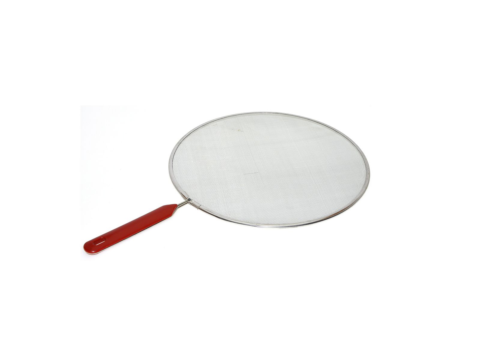 Эффективный защитный экран от брызг — плоское сито с ручкой. Защищает кожу рук и одежду от раскаленных брызг воды и масла во время жарки. Накрывайте сковороду во время жарки и тушения, сквозь мелкую сетку эффективно выпаривается жидкость, при этом крупные капли уже не способны пройти сквозь ячейки. Удобная ручка не нагревается и не плавится, что делает изделие максимально удобным в использовании. После применения тщательно промойте экран губкой с моющими средствами, чтобы удалить весь жир. Изготовлено из стали с хромированным покрытием, ручка из стали со вставкой из пластика.