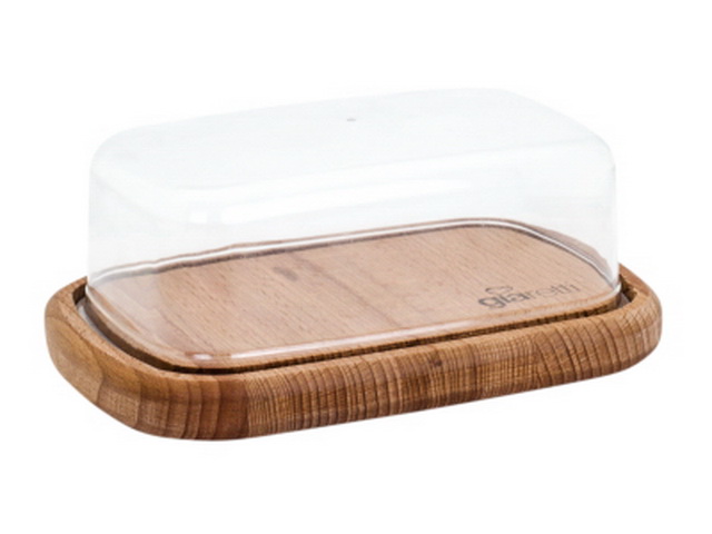 Масленка "Natura" поставляется вместе с пластиковой крышкой, которая плотно прилегает к подносу, предотвращая преждевременное обветривание и впитывание посторонних запахов продуктом при хранении в холодильнике. Прозрачный материал позволяет контролировать количество и внешний вид содержимого без необходимости открывать емкость. Благодаря форме модели посуда вмещает стандартный прямоугольный брусок сливочного масла. Основание контейнера изготовлено из экологически чистого прочного дерева, которое отличается устойчивостью к износу.