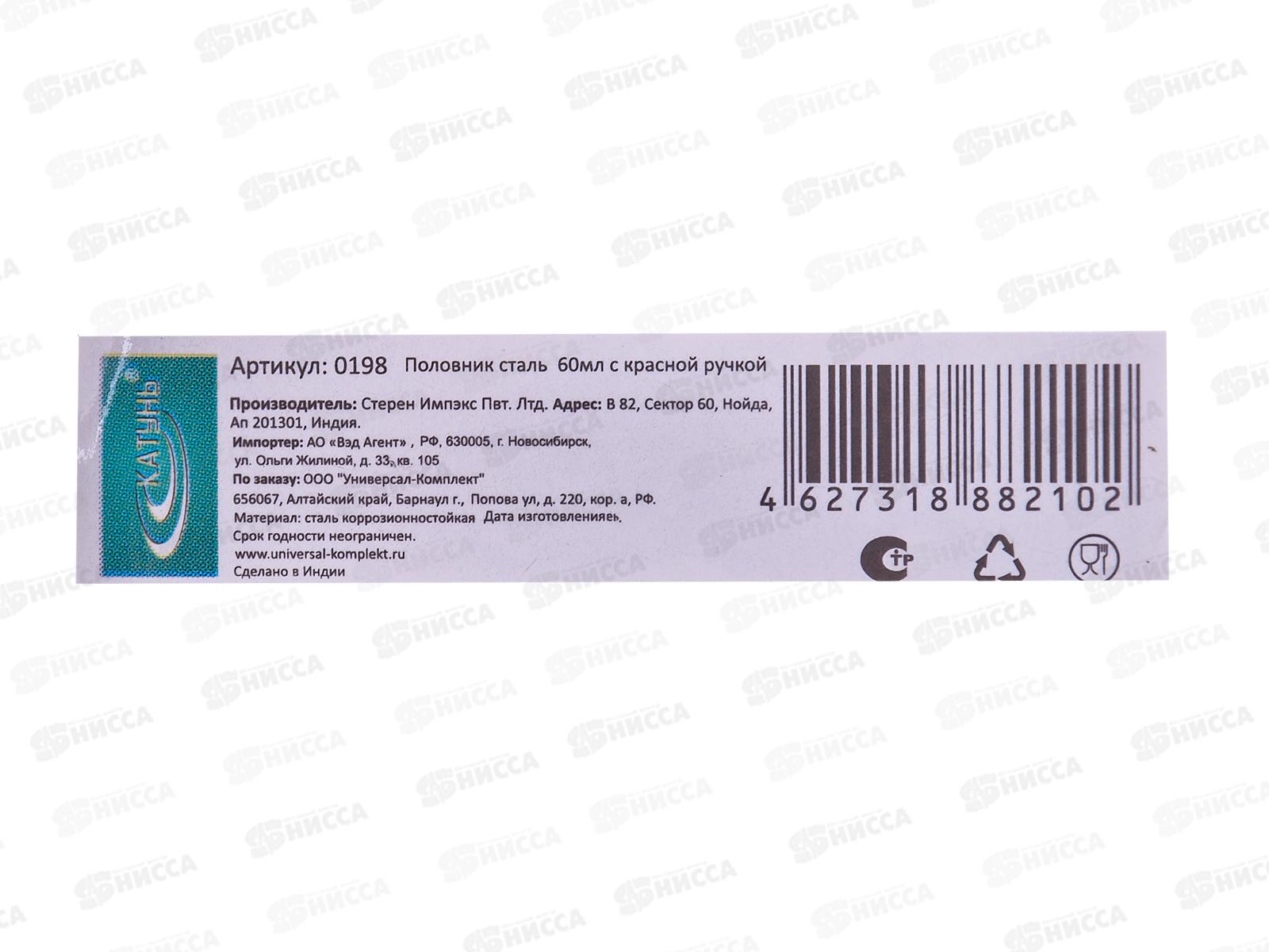 Половник сталь 60мл с плоским дном красная ручка 0198