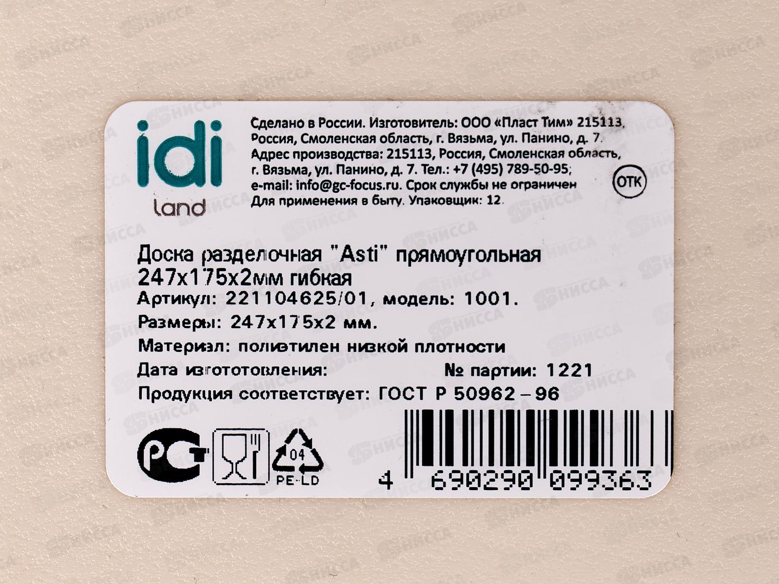 Доска разделочная "Asti" 247*175*2мм гибкая 221104625/01 *30