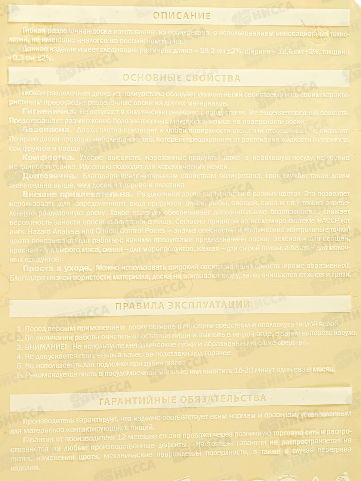 Разделочная доска из полиуретана - собственная инновационная разработка компании «TimA», не имеющая аналогов на российском рынке. Она обладает уникальными свойствами и по своим характеристикам превосходит разделочные доски из любых других материалов. Не вступает в химическую реакцию с продуктами. Благодаря отсутствию пористости полиуретана, болезнетворные микроорганизмы (бактерии, грибки плесени и запахи) легко удаляются с поверхности, в отличие от деревянных разделочных досок. А специальная добавка с активными ионами серебра убивает все известные бактерии и микроорганизмы уже на стадии нарезки продуктов. При резке лезвие ножа взаимодействует с упругой эластичной поверхностью, что сохраняет остроту ножа (в отличие от разделочных досок из других материалов). Доска плотно прилегает к любой поверхности стола или столешницы, не скользит. При работе с острым ножом это очень важно в плане безопасности. По краю доски проходит небольшой желоб, который предохраняет от растекания жидкости (например, сок фруктов и овощей). Благодаря исключительным свойствам полиуретана, срок службы такой доски значительно выше, чем досок из дерева и пластика. Единственные ограничения для досок из полиуретана – не использовать их как подложку для рубки мяса или подставку под горячее. Разделочную доску можно мыть в посудомоечной машине. Можно использовать широкий спектр моющих средств (кроме абразивных). Доска абсолютно не впитывают влагу и запахи продуктов, легко очищается от жира и грязи.