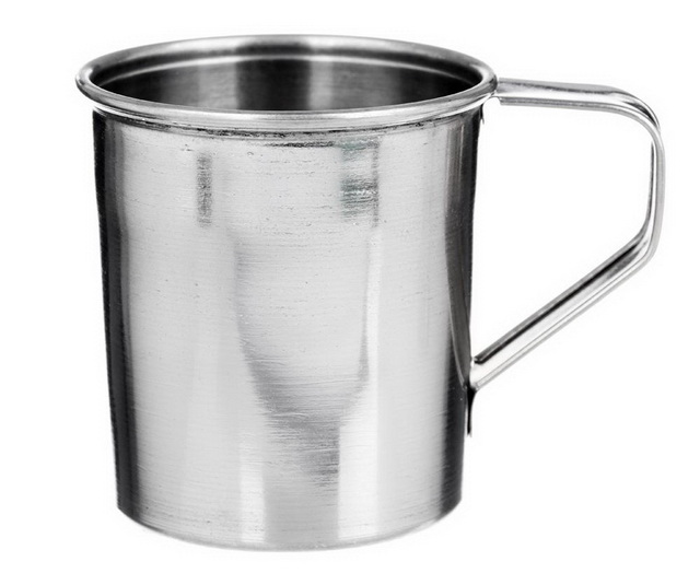 Кружка объемом 300 мл из нержавеющей стали для использования на стационарных или походных кухнях. Прочная, легкая, долговечная, не держит в себе запахи после мытья. Ее невозможно разбить. При желании кружку с напитком или супом можно подогреть прямо на открытом огне.