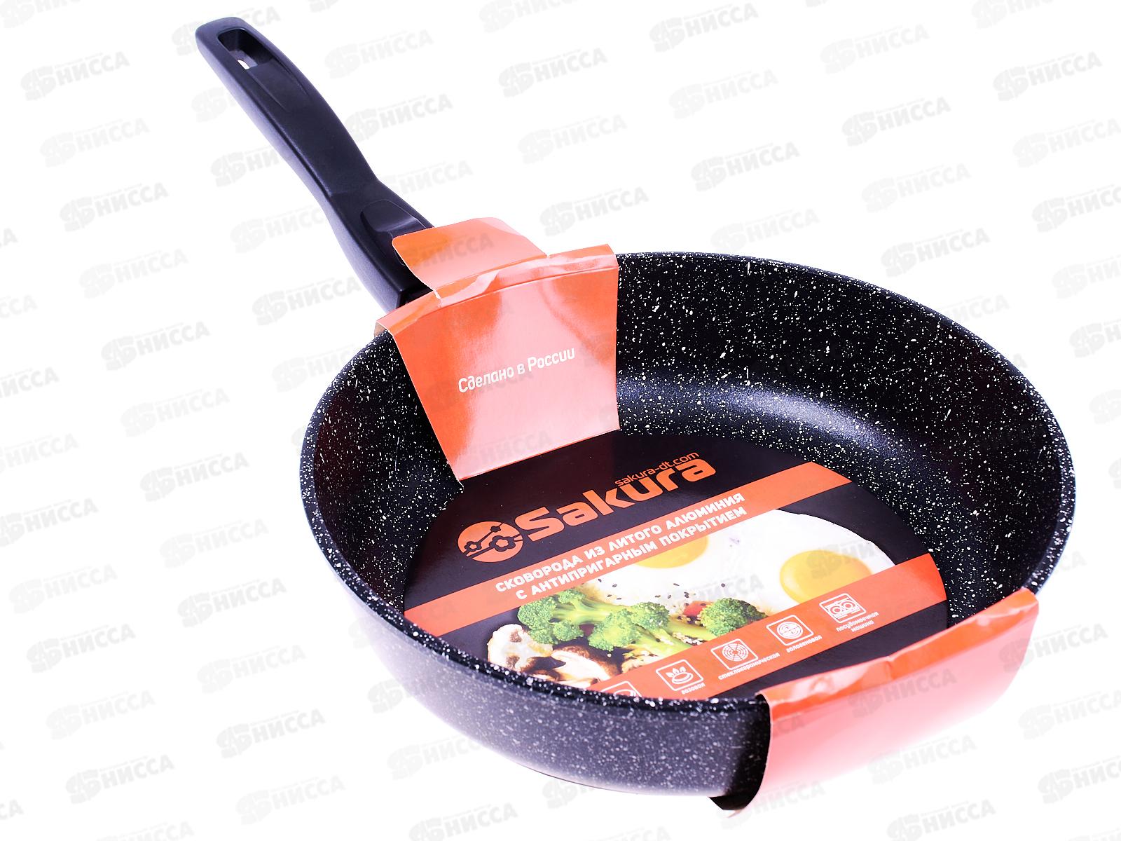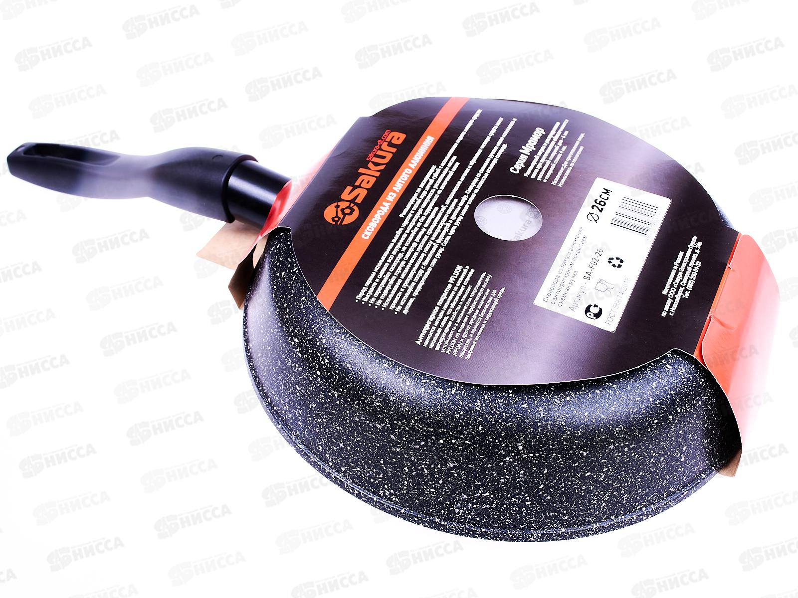 Сковорода SA-F-02-26 Мрамор 26см литая съемная ручка черная