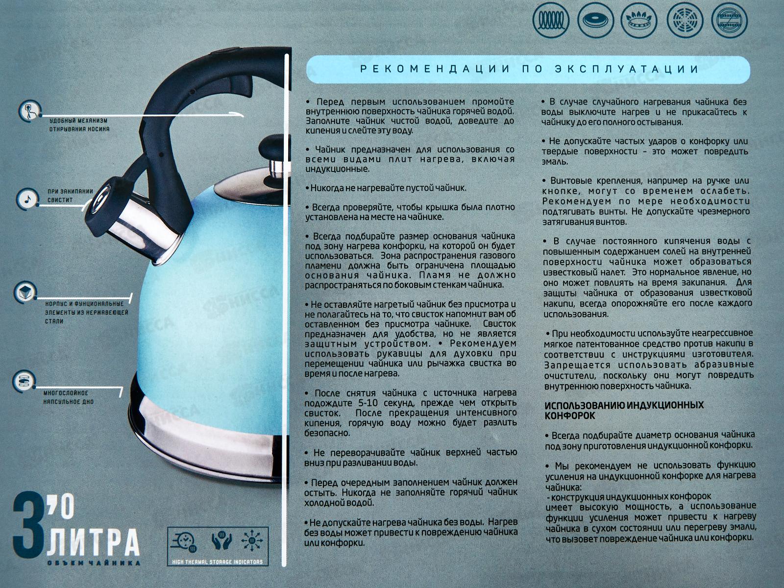 Чайник 3л металл со свистком нержавеющая сталь 53006 *12