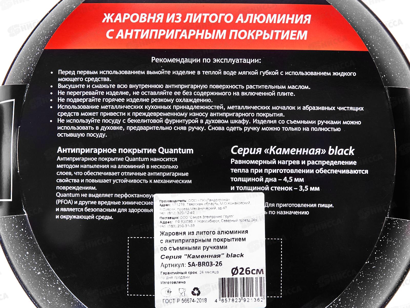Жаровня со съемными ручками SA-BP03-26 Каменная Black 26см черная