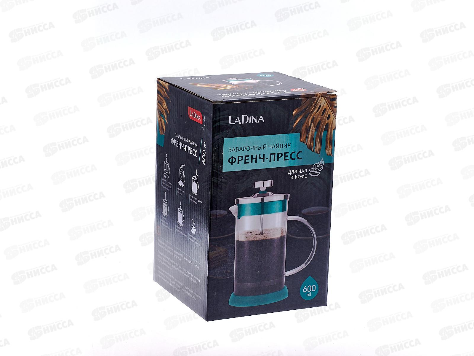 Френч-пресс Ladina 600 мл прекрасно подойдет для заваривания кофе, чая, какао, трав и других горячих напитков. Колба пресса сделана из высококачественного термостойкого боросиликатного стекла, которое сохраняет вкус и запах напитков. Поршень и фильтр изготовлены из высококачественной пищевой нержавеющей стали 18/10. Металлический сетчатый фильтр обеспечивает высокое качество фильтрации напитков и позволяет использовать для заваривания даже мелкий помол кофе. При заваривании вам не придётся использовать дополнительно подставку под горячее, т.к. на дне есть специальный силиконовый ободок. Современный дизайн дополнит любой интерьер и создаст уютную атмосферу Вашего дома. Ручка не нагревается и обеспечивает безопасность использования. Можно мыть в посудомоечной машине.