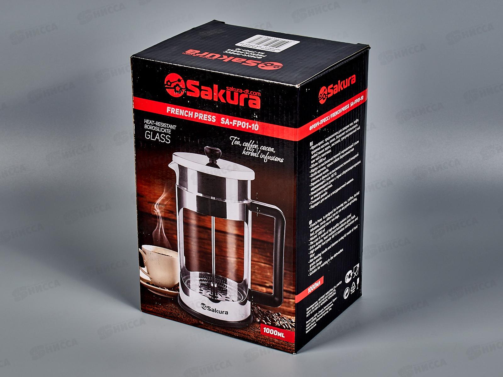 Объем 1000мл; материал боросиликатное стекло, нержавеющая сталь, пластик. Френч-пресс изготовлен из жаропрочного боросиликатного стекла, с фильтрующим поршнем из нержавеющей стали, пластиковая ручка и крышка хром. Подходит для заваривания кофе и чая. Пос