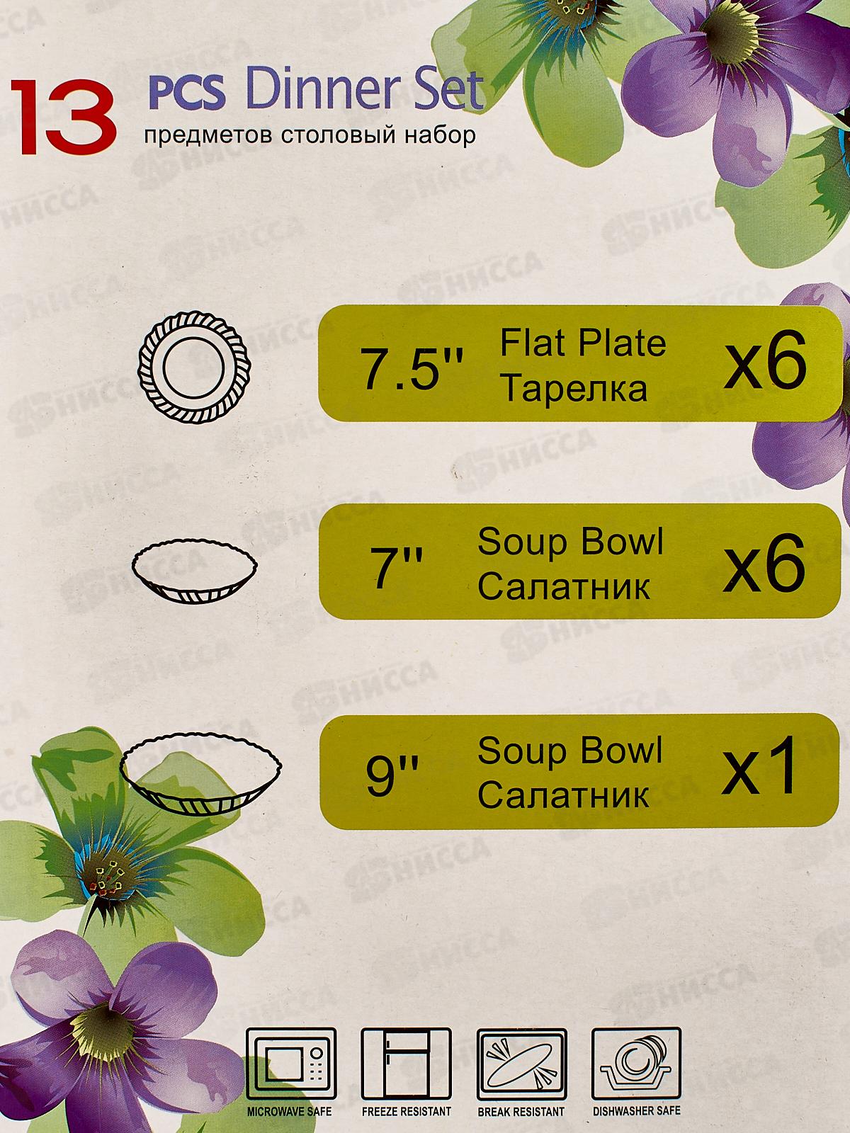 Состав набора: тарелка d 19 см - 6 шт, салатник d 17,5 см - 6 шт, салатник d 22,5 см - 1 шт