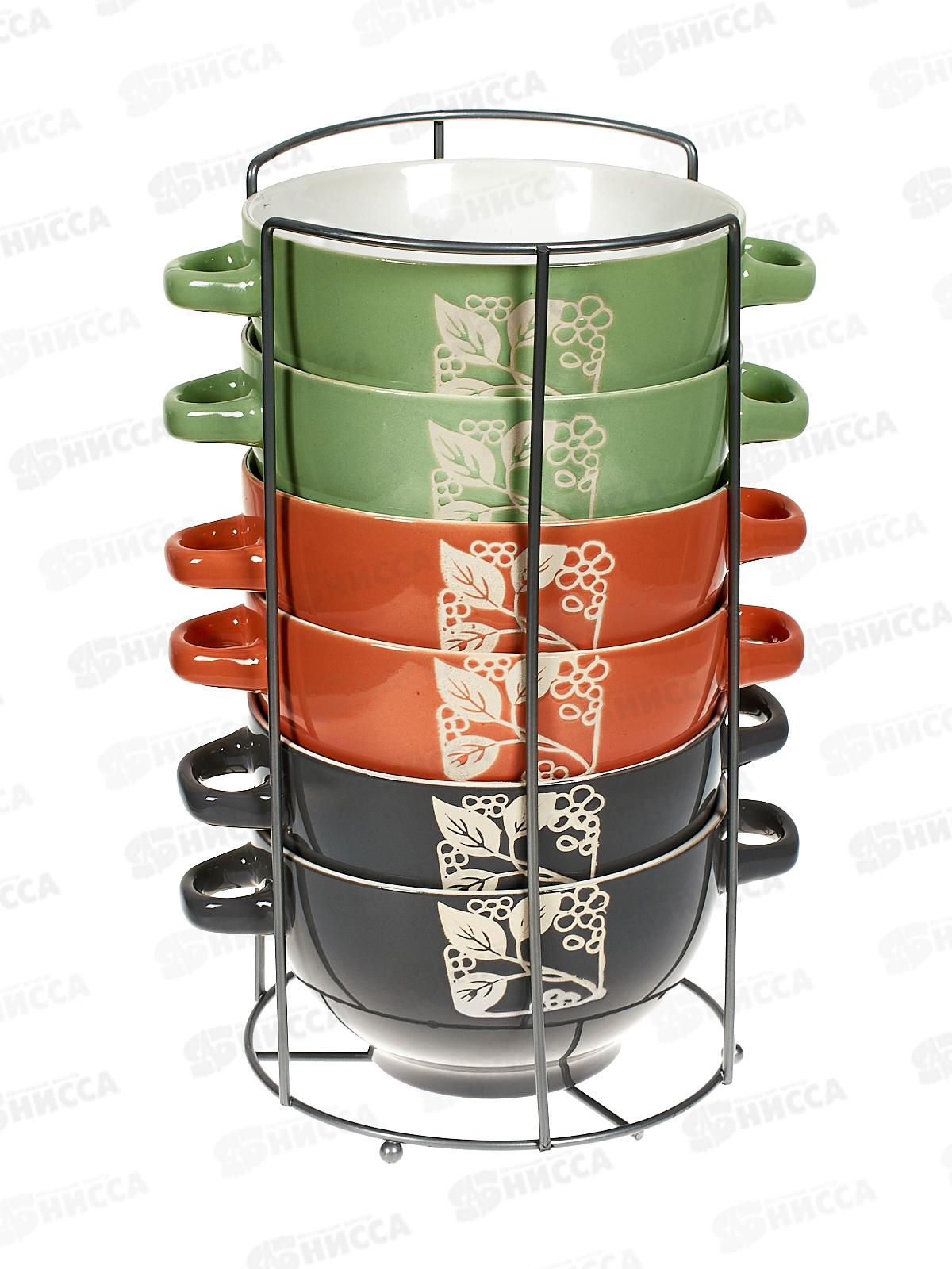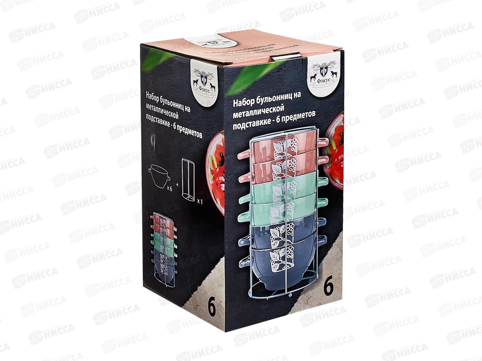 Набор бульонниц 550мл на мет подставке 6шт микс 23812 *1/4