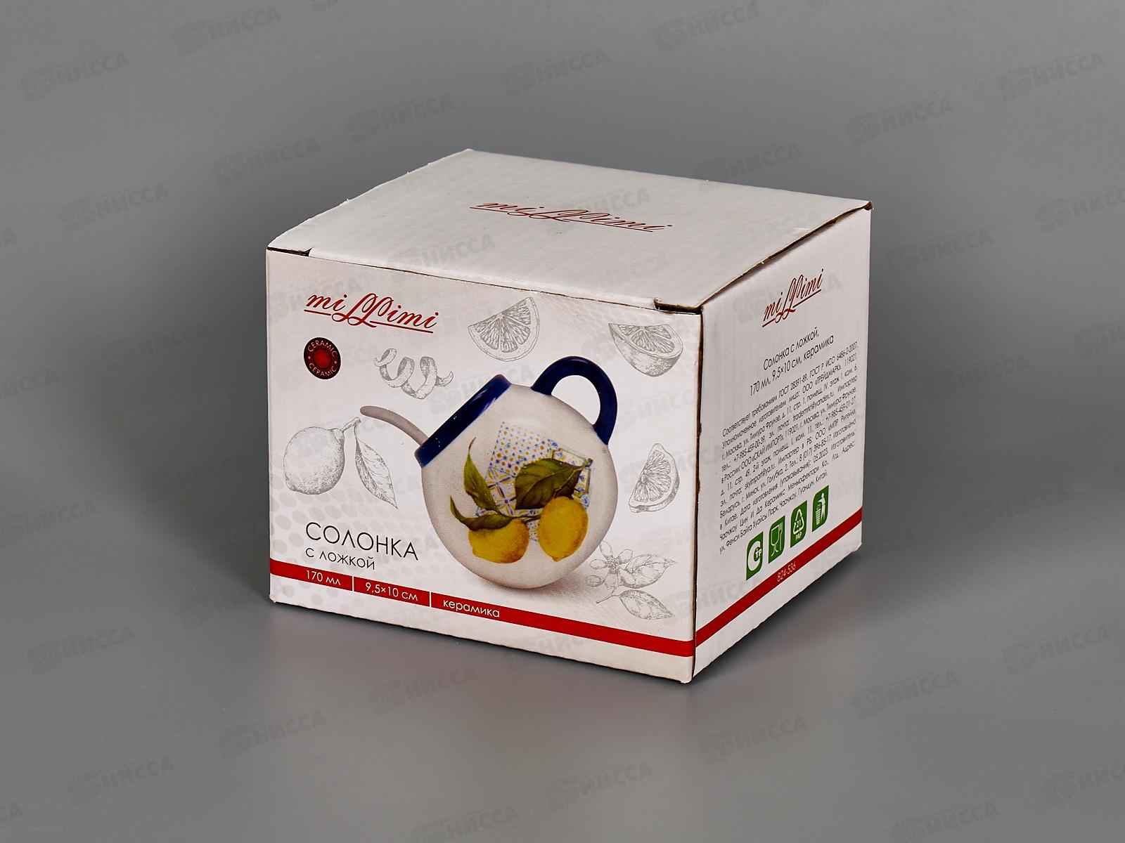 Солонка "Лимоны" с ложкой 170мл 9,5*10см керамика 824-536 г