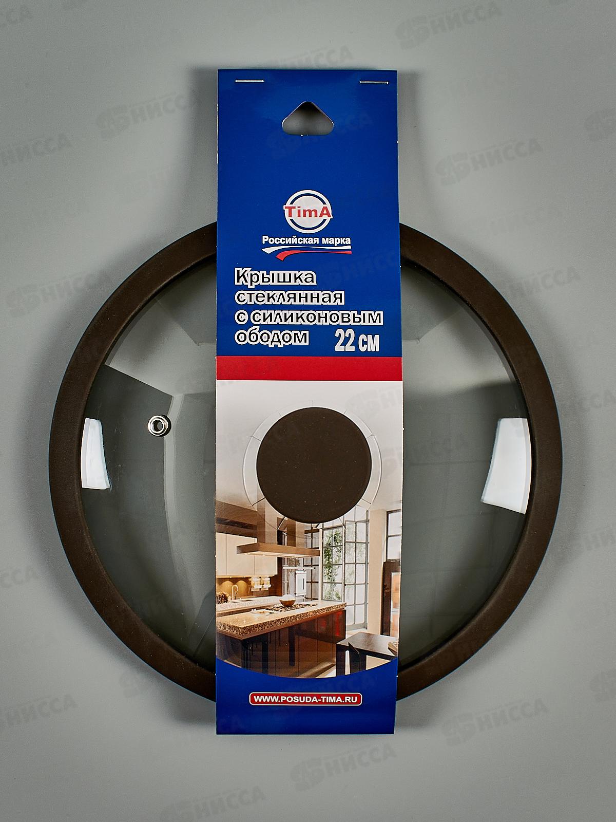 Крышка стеклянная 22см TimA 4822BR с силикон/обод. коричневая