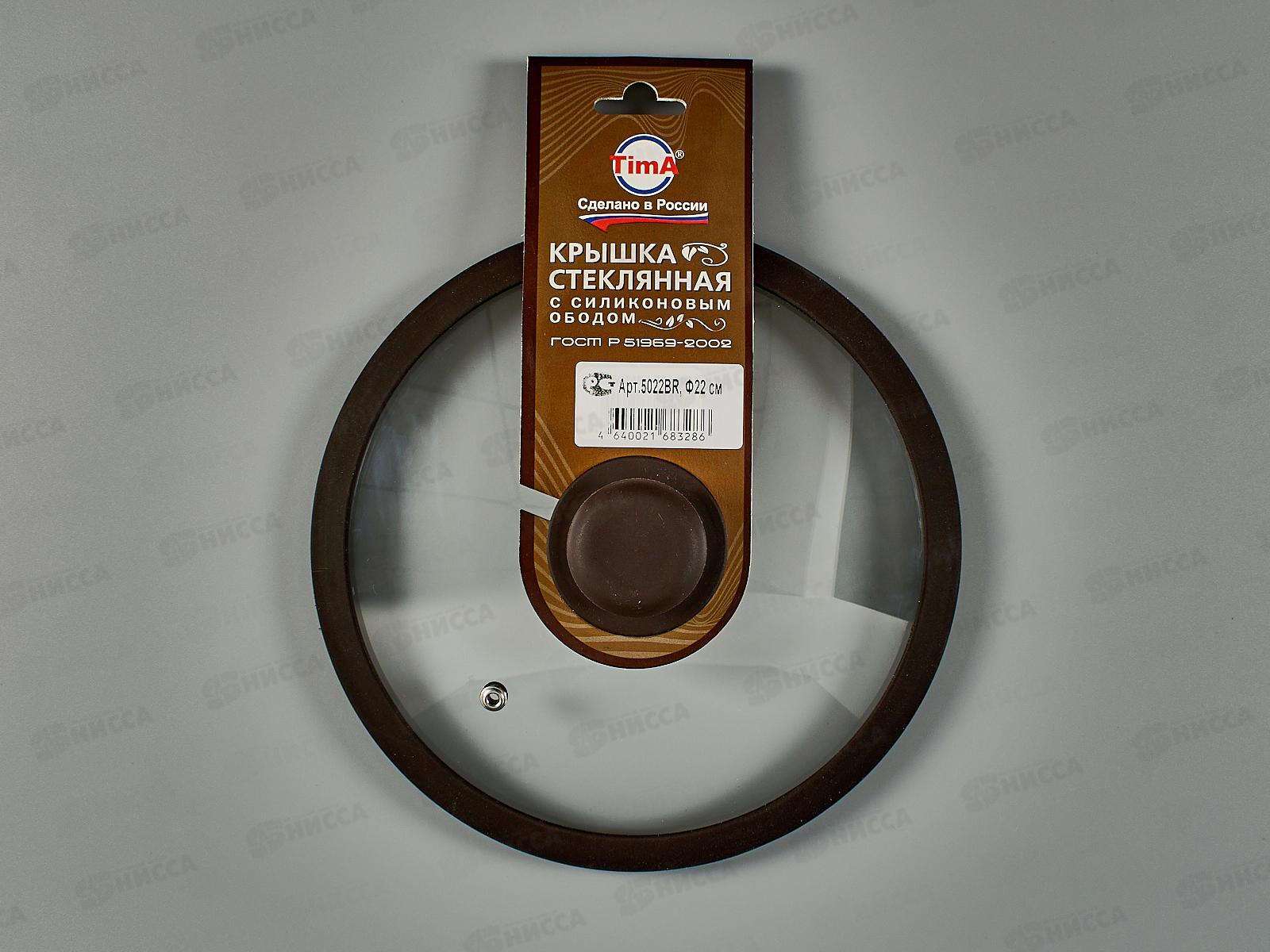 Крышка стеклянная 22см TimA 5022BR с силикон/обод. коричневая