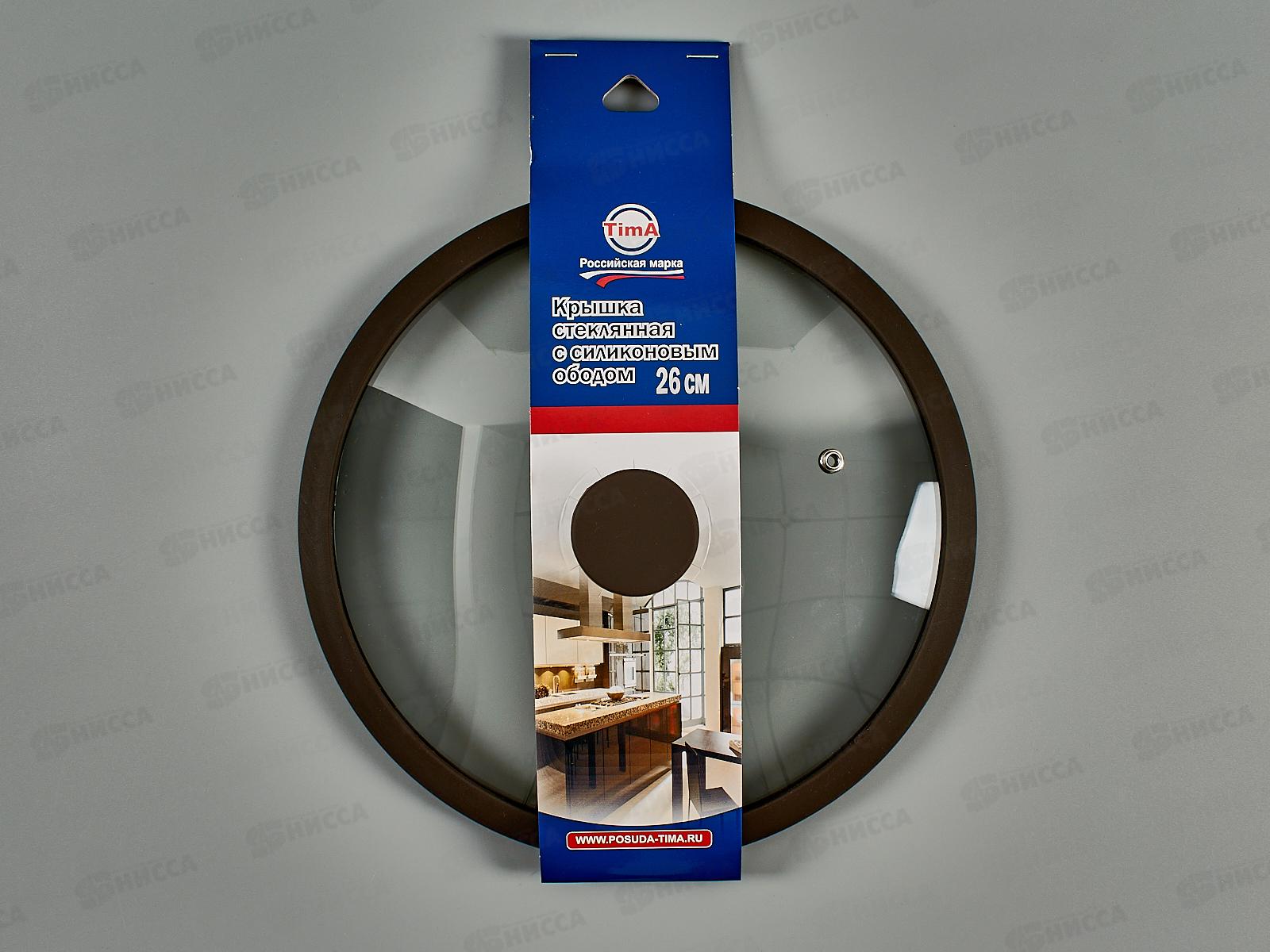 Крышка стеклянная 26см TimA 5026BR с силикон/обод. коричневая