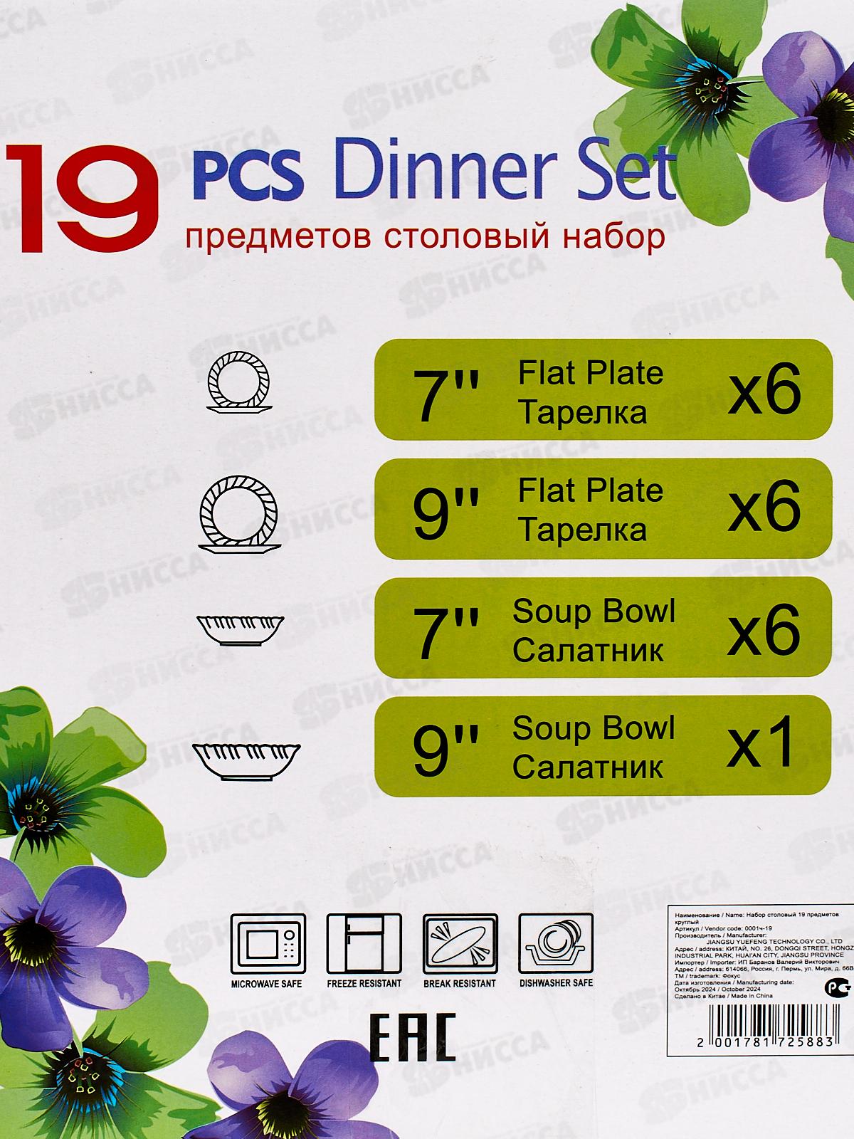 Состав набора: тарелка 7" - 6 шт, тарелка 9" - 6 шт, салатник 7" - 6 шт, салатник 9" - 1 шт.