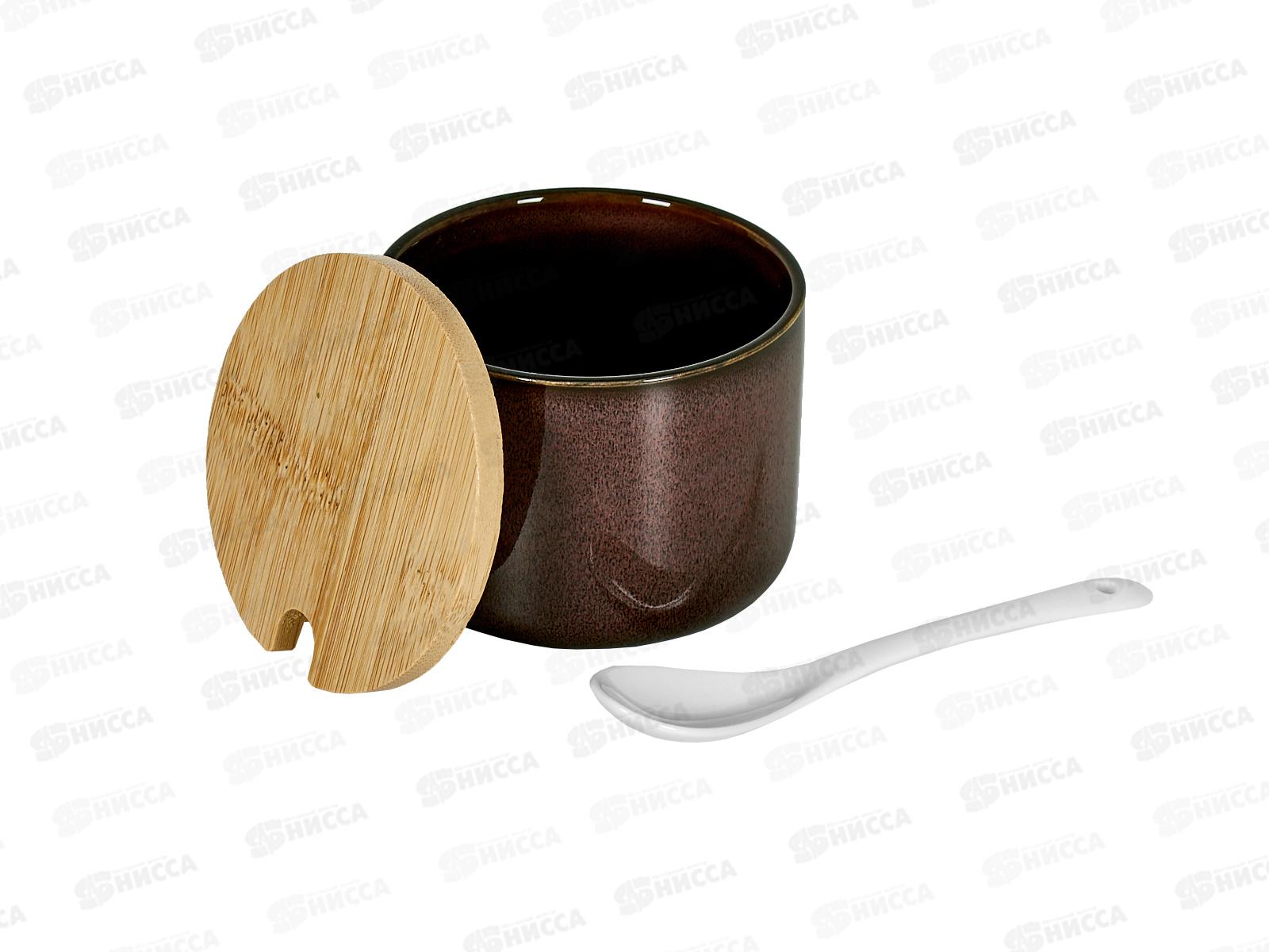 Сахарница с бамбуковой крышкой 250мл фарфор Коричневый ск0624-266 *1