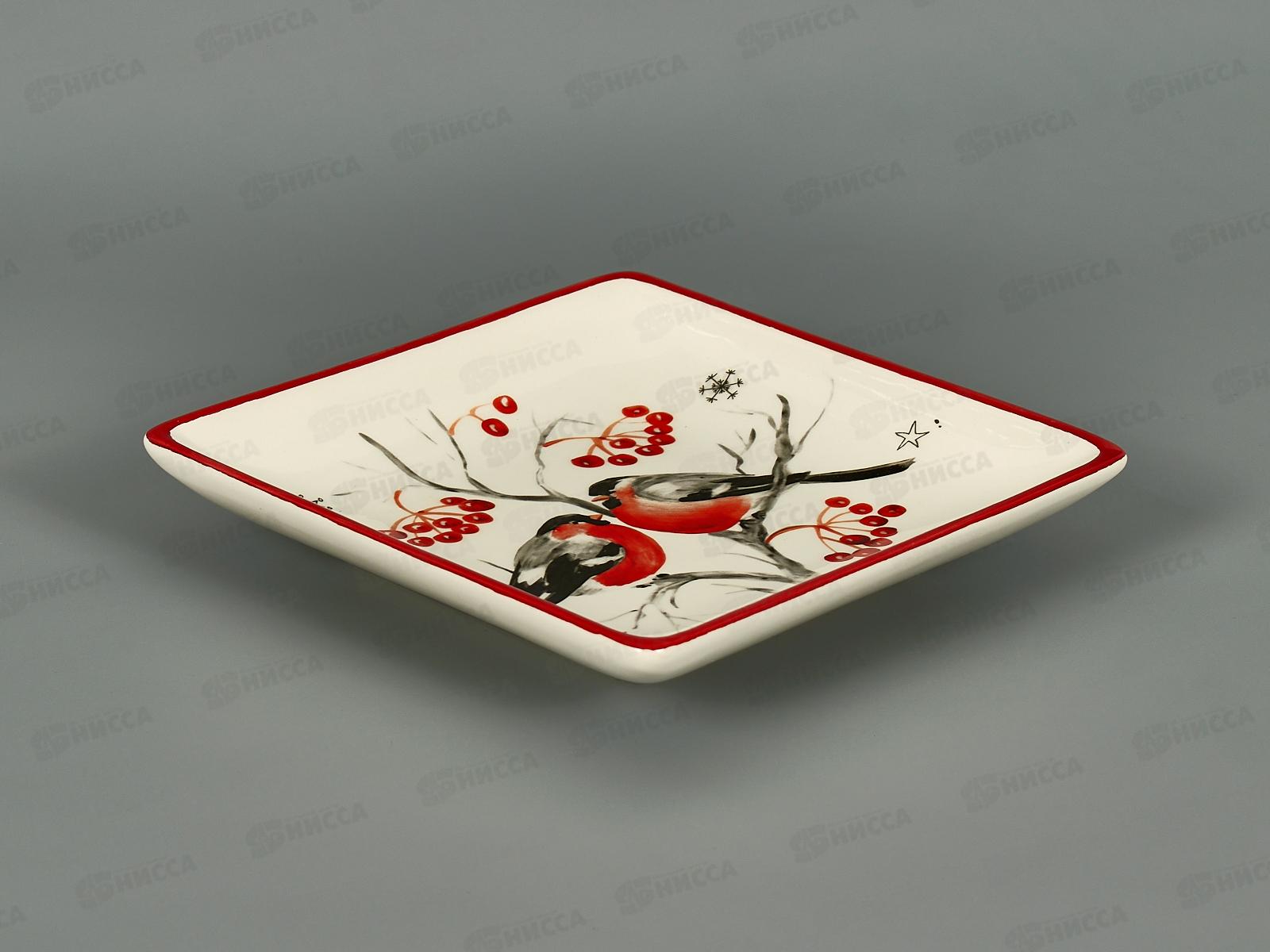 Код:594887; Блюдо "Снегири" квадратное 15*15*2,9см керамика 820-681 г