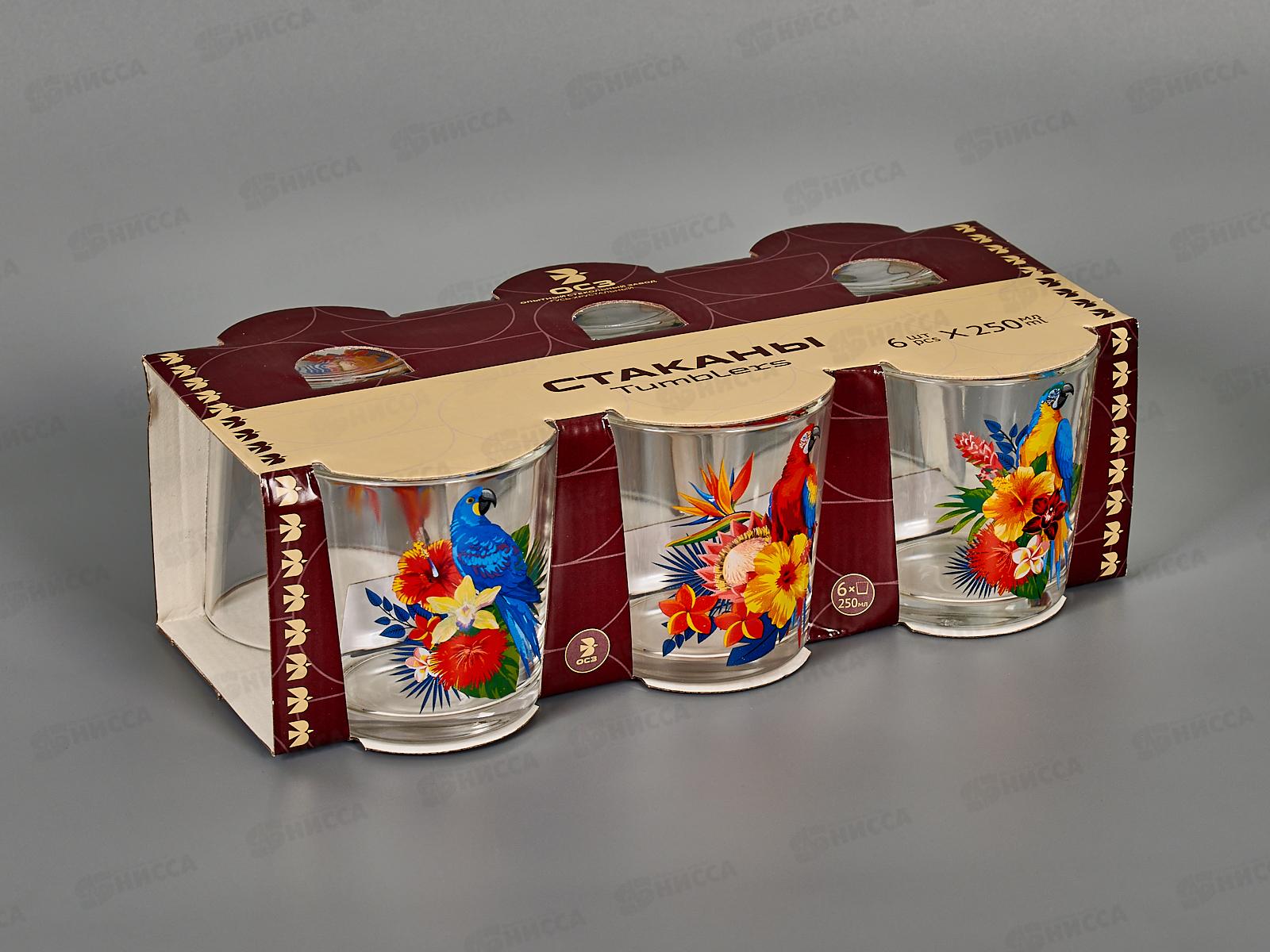 Набор стаканов "Ода" (Тропические птицы) 6штук 230мл *6 1249