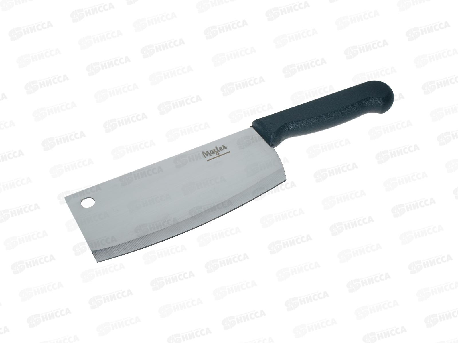 Прекрасный кухонный топорик для готовки от бренда "Мастер". Изготовлен из качественной нержавеющей стали, имеет приятную на ощупь пластиковую рукоять. Размер топора - 23 см.
