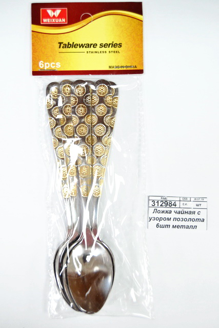 Ложка чайная с узором позолота 6шт металлическая (047255) Ж