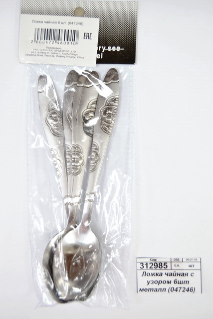 • Ложка чайная с узором 6шт металлическая (047246)  Ж