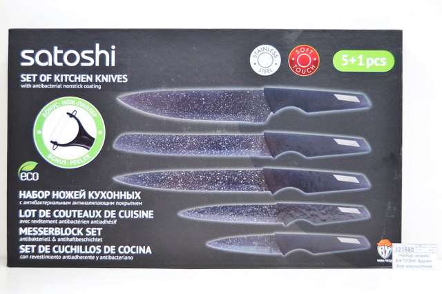 Комплектация: 5 ножей, овощечистка, магнитная коробка