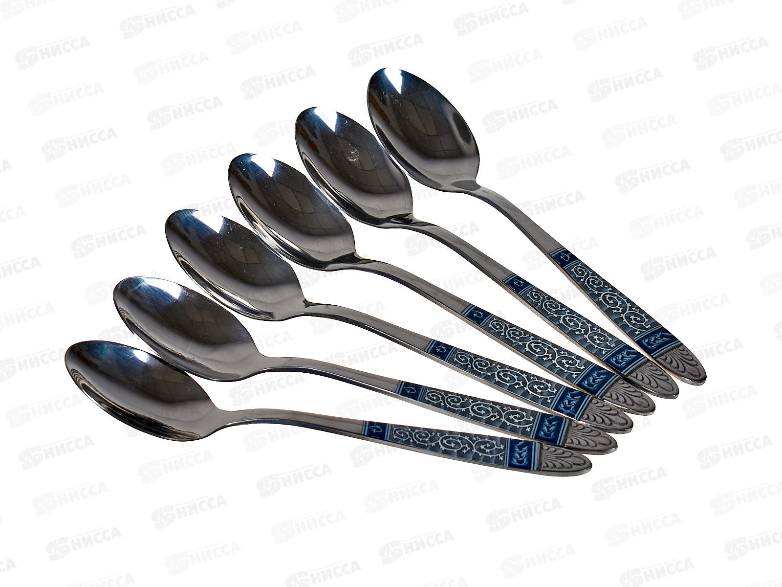 Чайная ложка с узором предназначена для сервировки стола. Она подходит для ежедневного использования и будет уместна за праздничным столом. Ложка изготовлена из металла. В комплекте 6 штук.