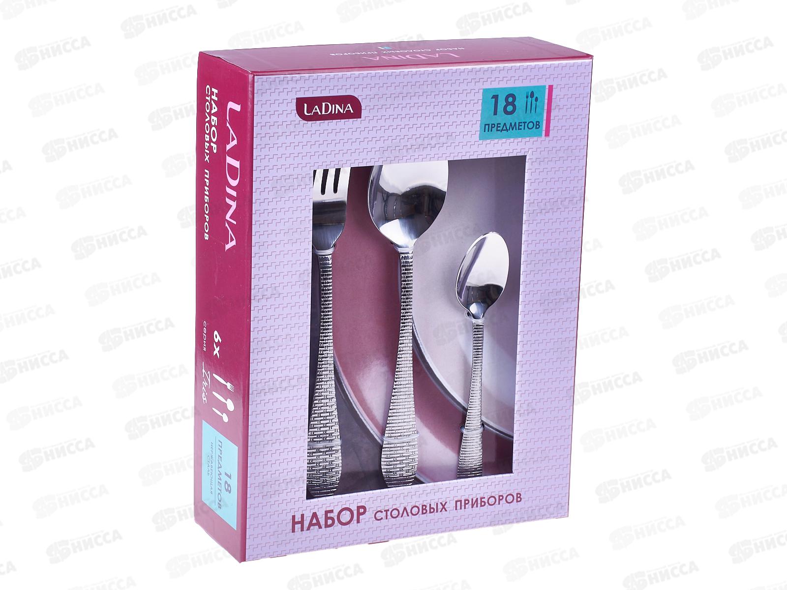 Набор столовых приборов от LaDina "Iris" из 18 предметов на 6 персон. Набор включает в себя: 6 вилок, 6 столовых ложек, 6 чайных ложек. Набор отлично подойдет как для подарка, так и для личного пользования. Столовые приборы изготовлены из высококачественной нержавеющей стали. Приборы из нержавеющей стали отличаются высокими антикоррозионными свойствами и прочностью. Легко моются обычными моющими средствами и в посудомоечной машине.
