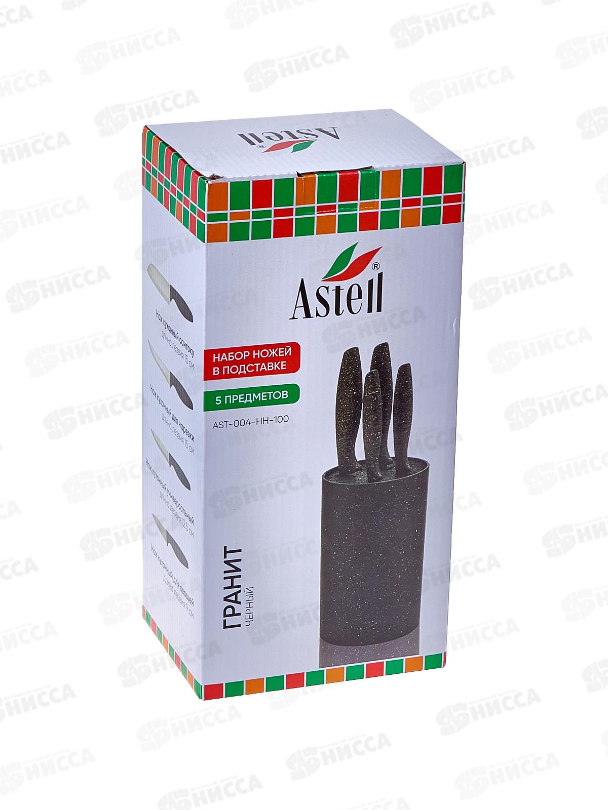 Набор ножей 5пр Черный гранит нерж,подствка пласт AST-004-HH-100