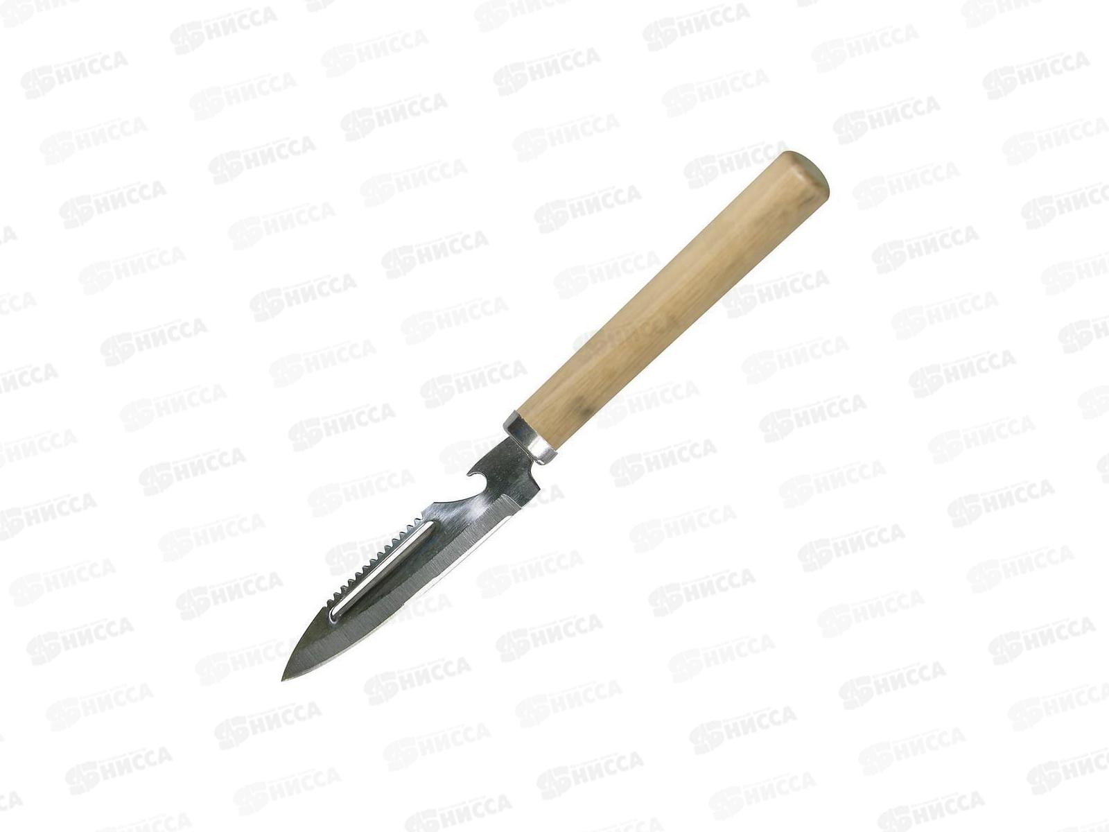 Нож-шинковка универсальная Ретро МультиДом AN57-12. Используется для шинковки капусты, а также для нарезки продуктов. С помощью специальной насечки на тыльной стороне ножа вы сможете быстро открыть банку или бутылку. Рабочая часть изготовлена из нержавеющей стали, ручка из пластика.