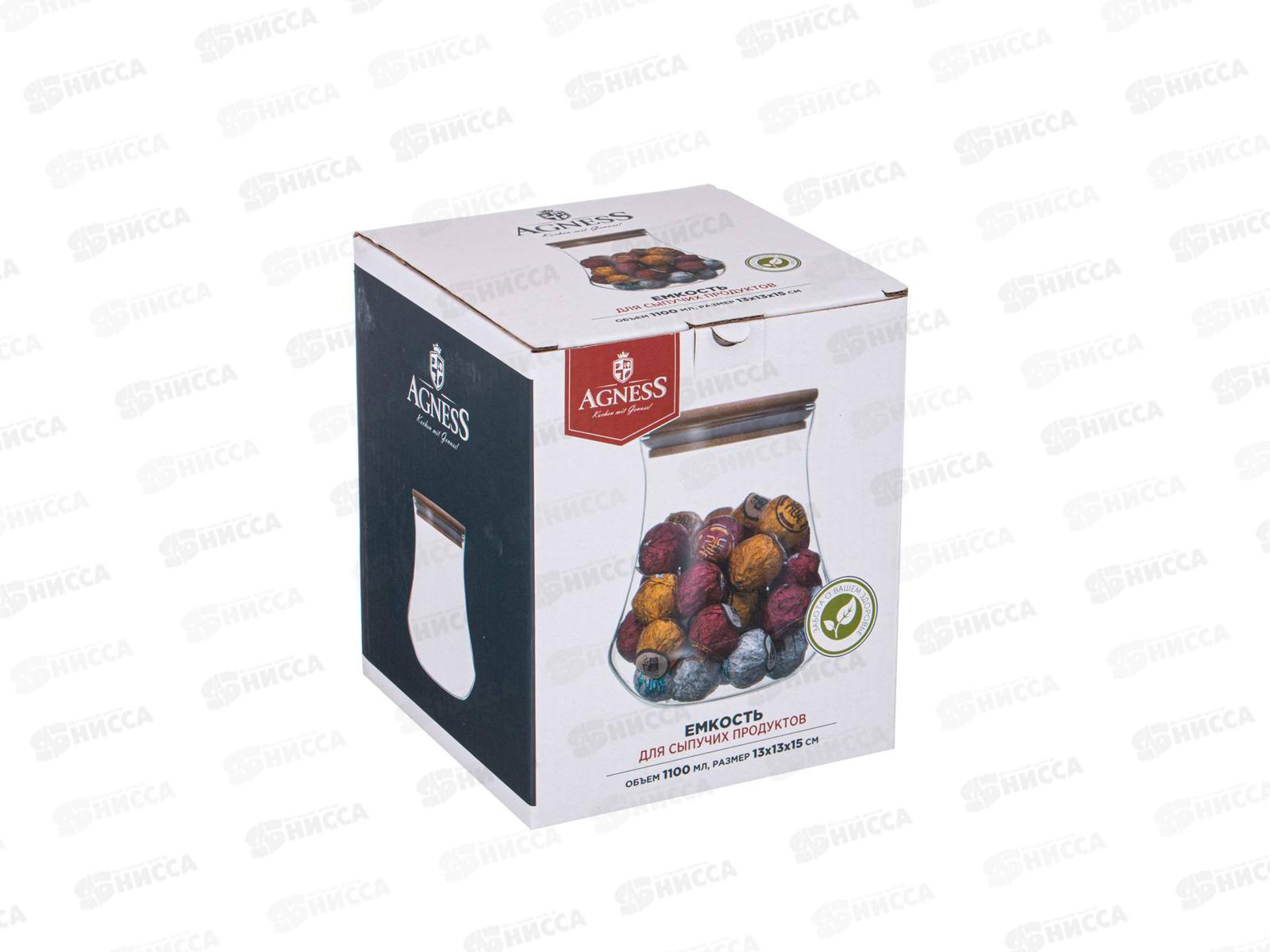 Емкость для сыпучих продуктов 1100мл с бамбуковой крышкой *24 250-142