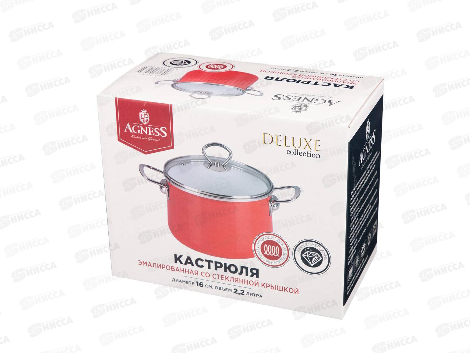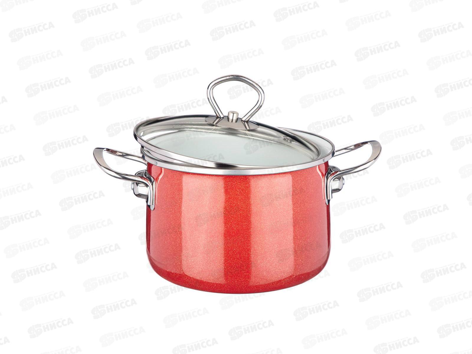 Кастрюля эмаль Deluxe со стеклянной крышкой красный 2,2л 901-050