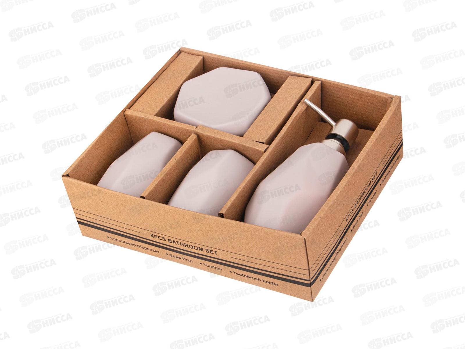 Комплектация: дозатор для жидкого мыла, подставка-стакан, подставка для зубных щёток, мыл