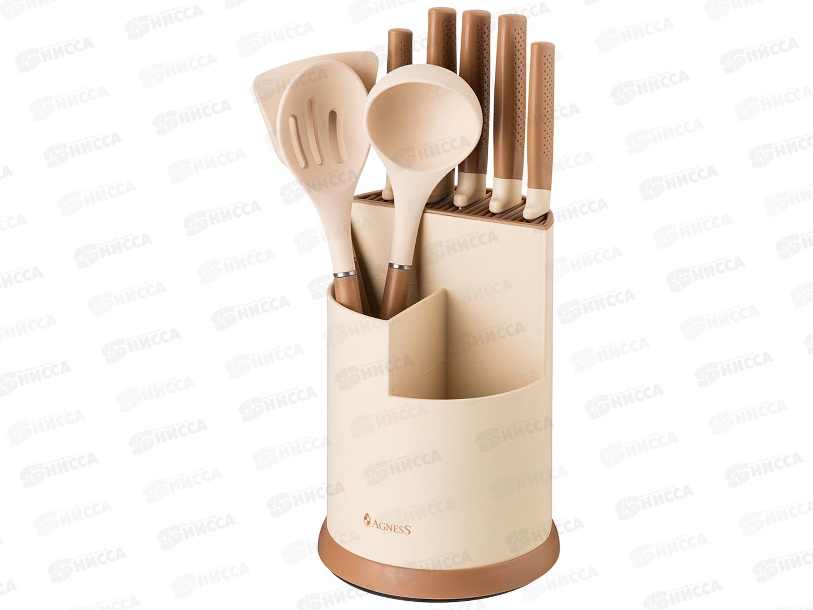 Набор Agness из 9пр 5нож полов,лопатка,шумовка,подставка 671-204