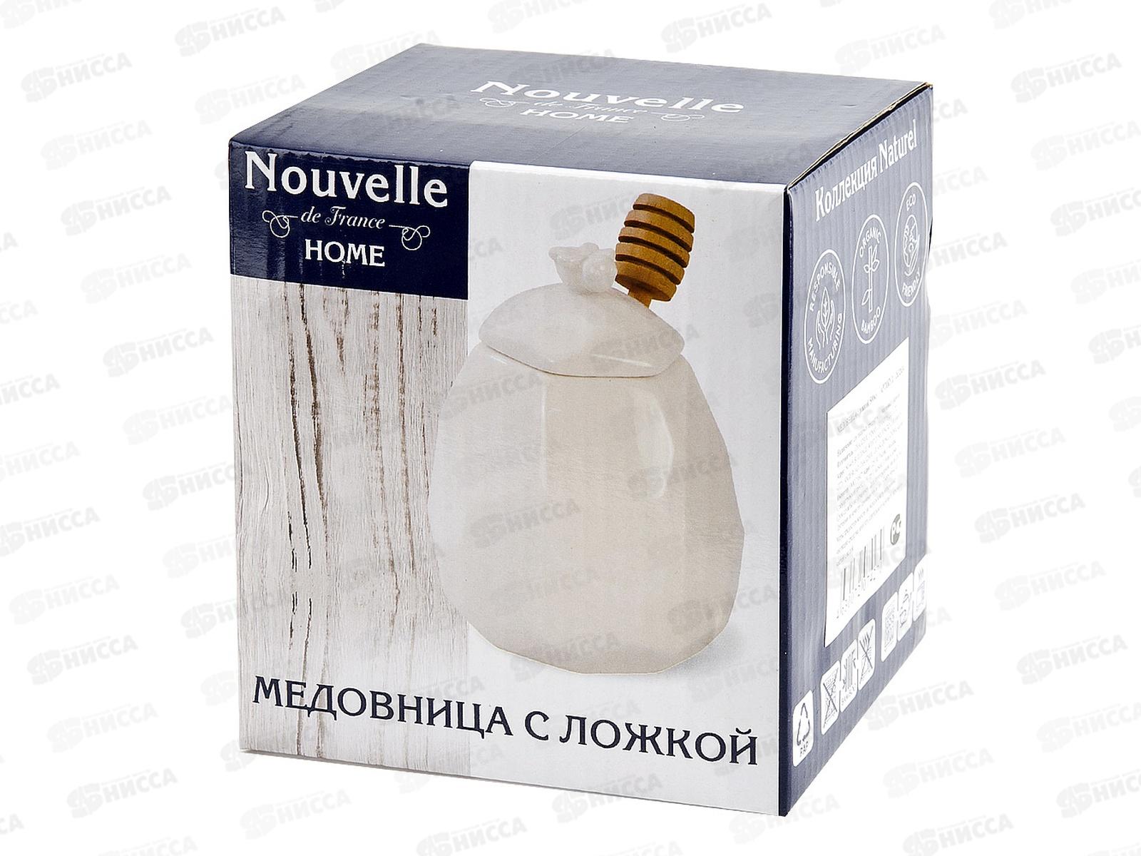 Медовница с ложкой "Naturel", 500 мл. Размеры: 10х10х13 см. Фарфор, бамбук. Подарочная упаковка.