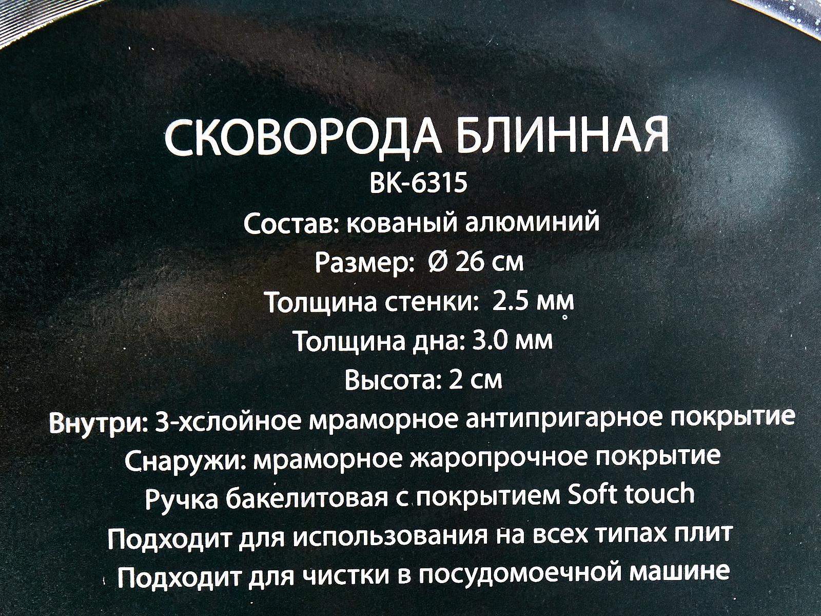 Сковорода BK-6315 26см блинная с мраморным покрытием