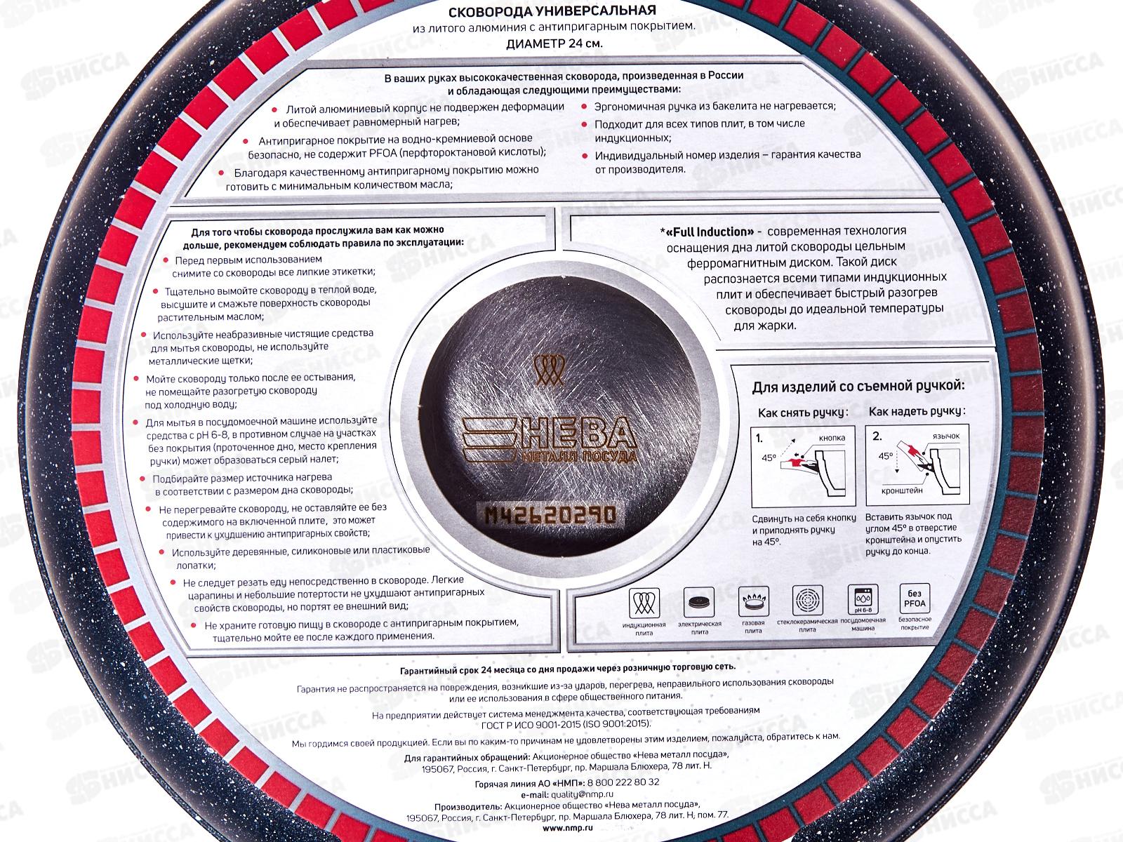 Сковорода 24см литая Индукция Гранит съемная ручка, L18024i