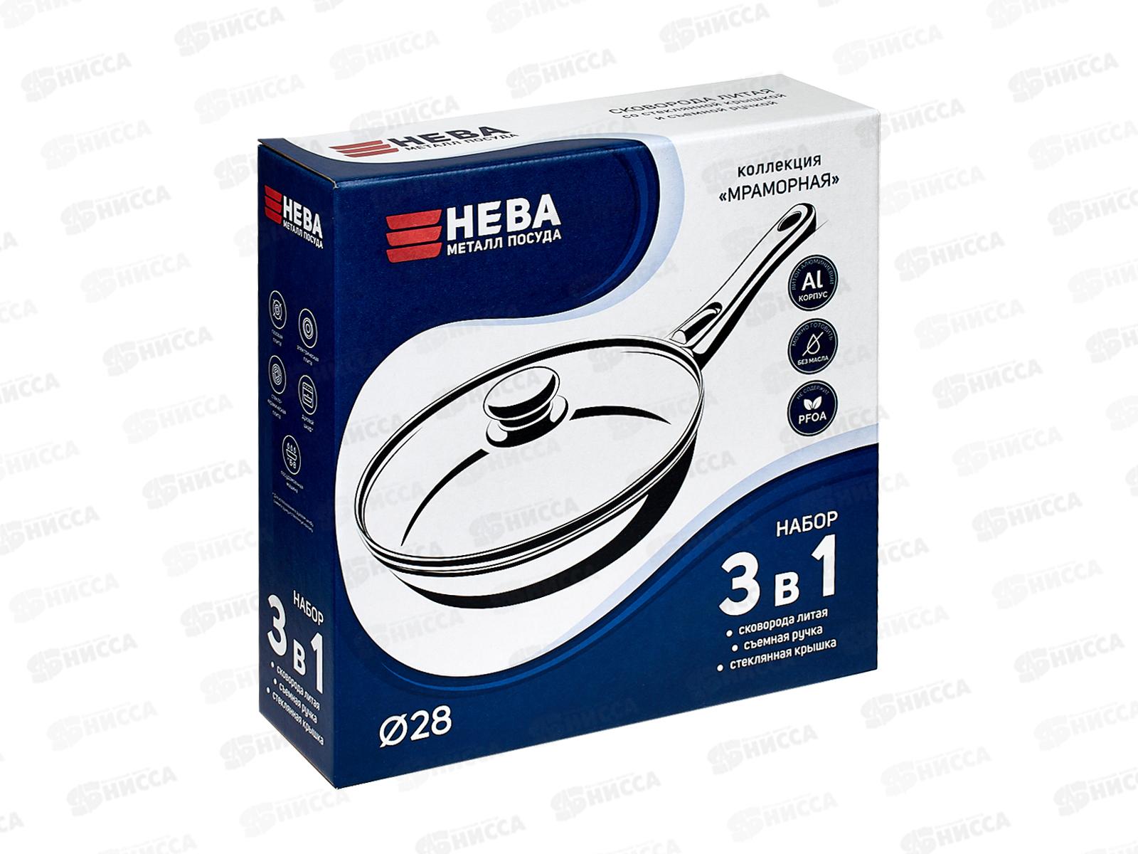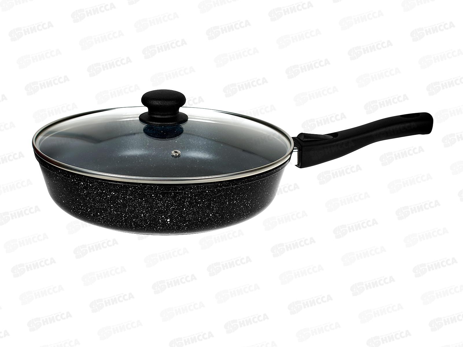 Сковорода 28см со стекл. крышкой с/р "Мраморная", MR77028