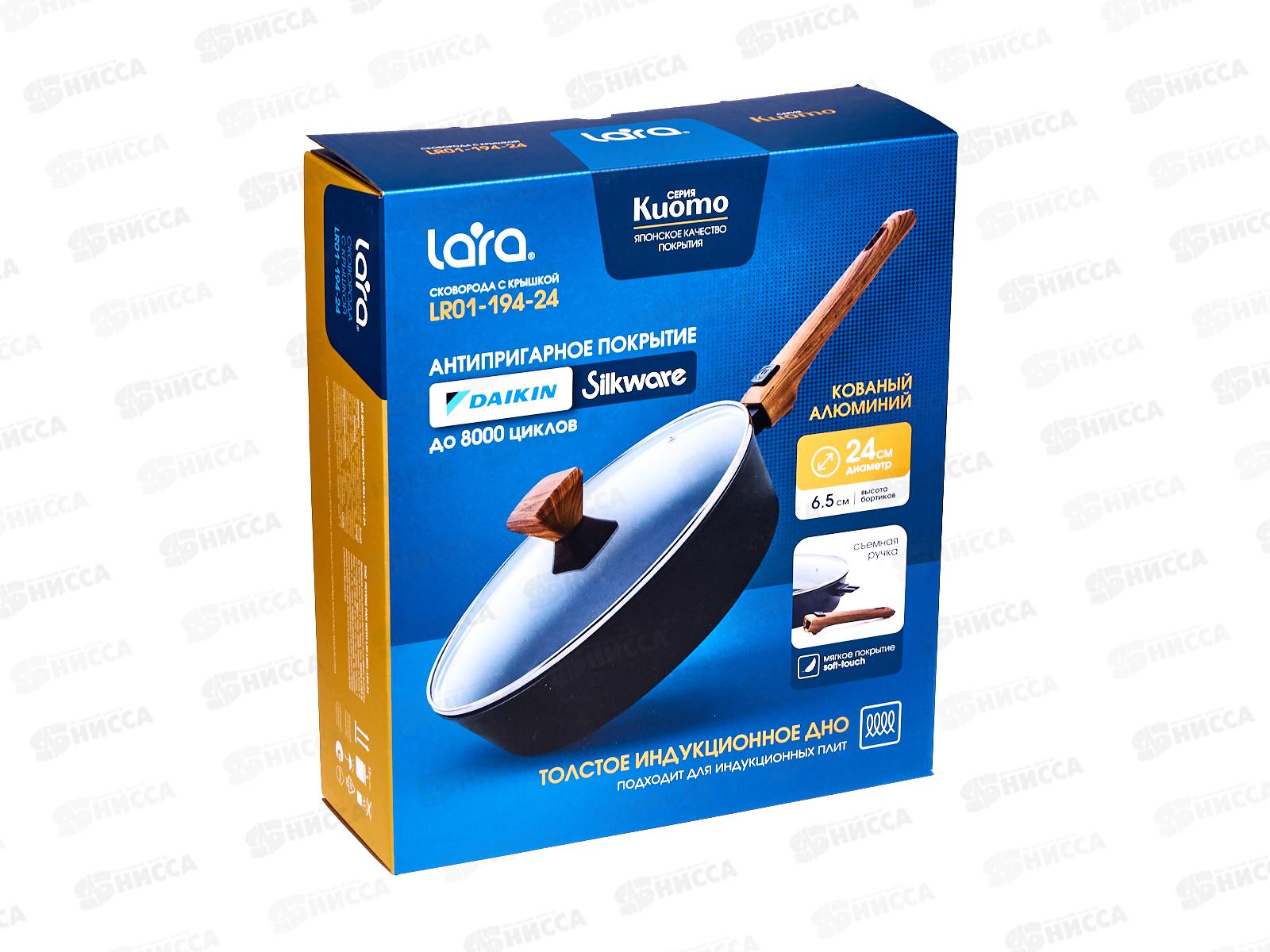 Сковорода Lara Киото LR01-194-24 24*6,5см индукция крышка съем ручка