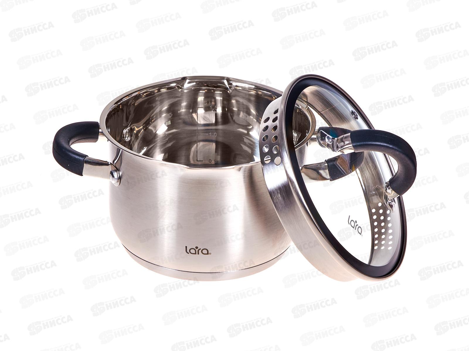Кастрюля Lara Ника LR02-905 16*10,5см 2,1л индукц дно крышка стекло