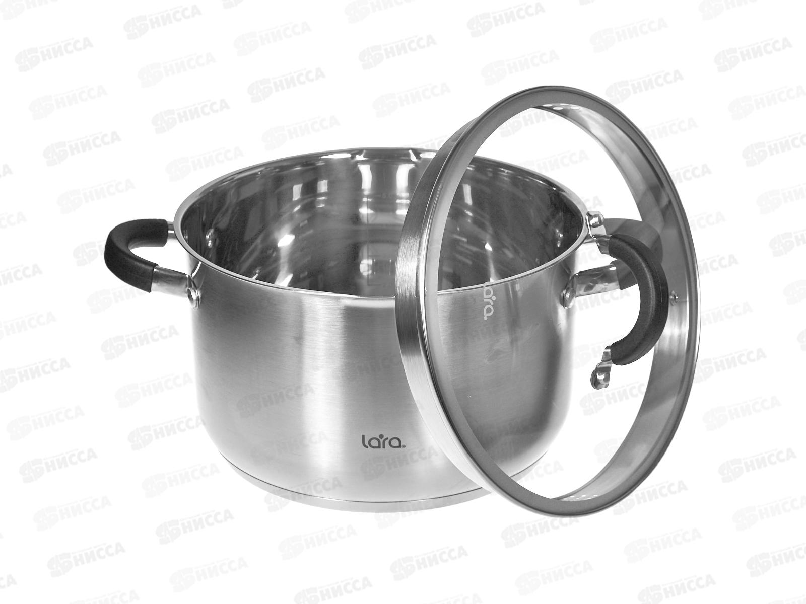 Кастрюля Lara LR02-9003 нержавеющая сталь 24*14,5см 6,5л индук, все виды плит, слив