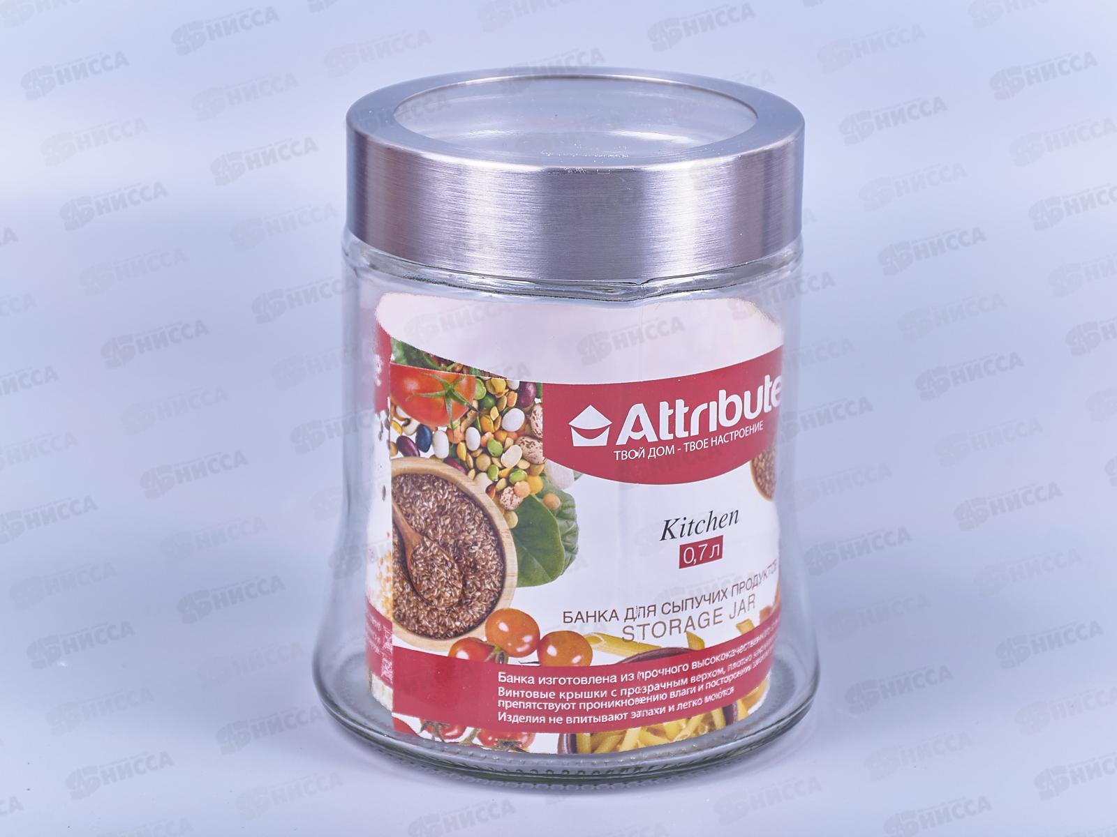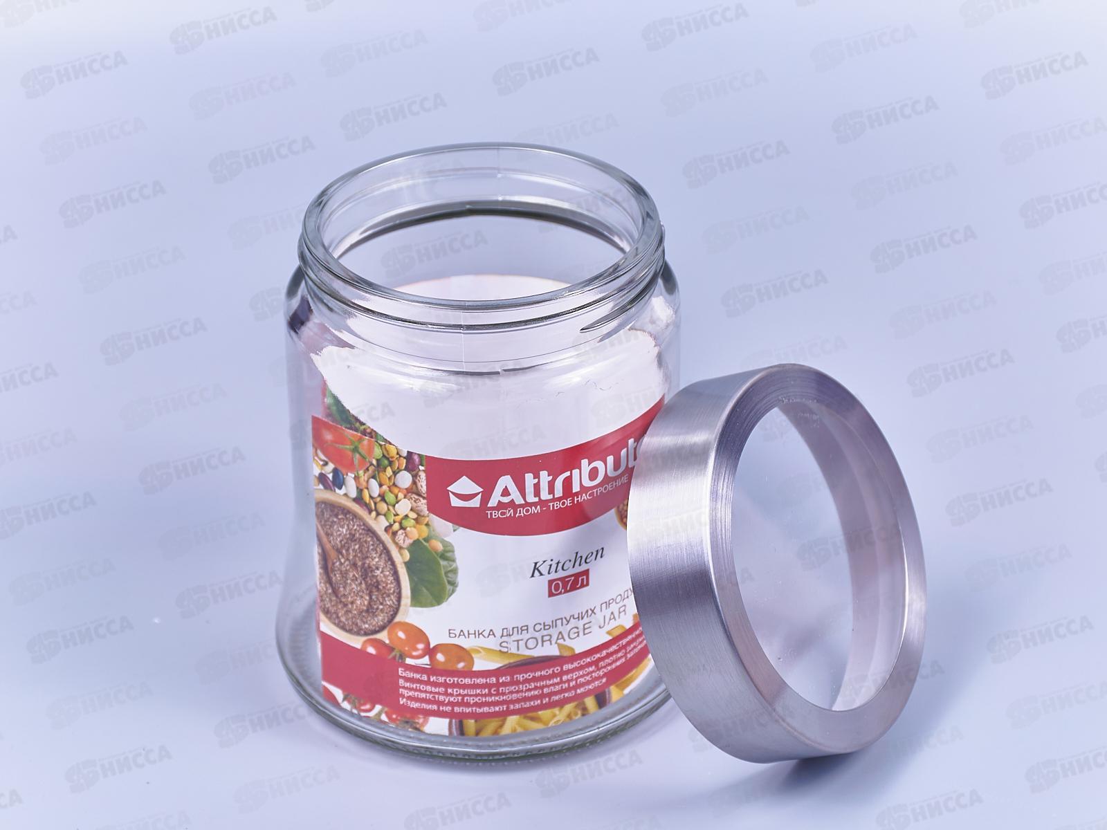 Банка стеклянная с прозрачной крышкой, 700 мл, Attribute Kitchen, ABS040. Банка изготовлена из высококачественного стекла. Емкость подходит для хранения сыпучих продуктов: круп, специй, сахара, соли. Она снабжена металлической крышкой, которая плотно и герметично закрывается, дольше сохраняя аромат и свежесть содержимого.